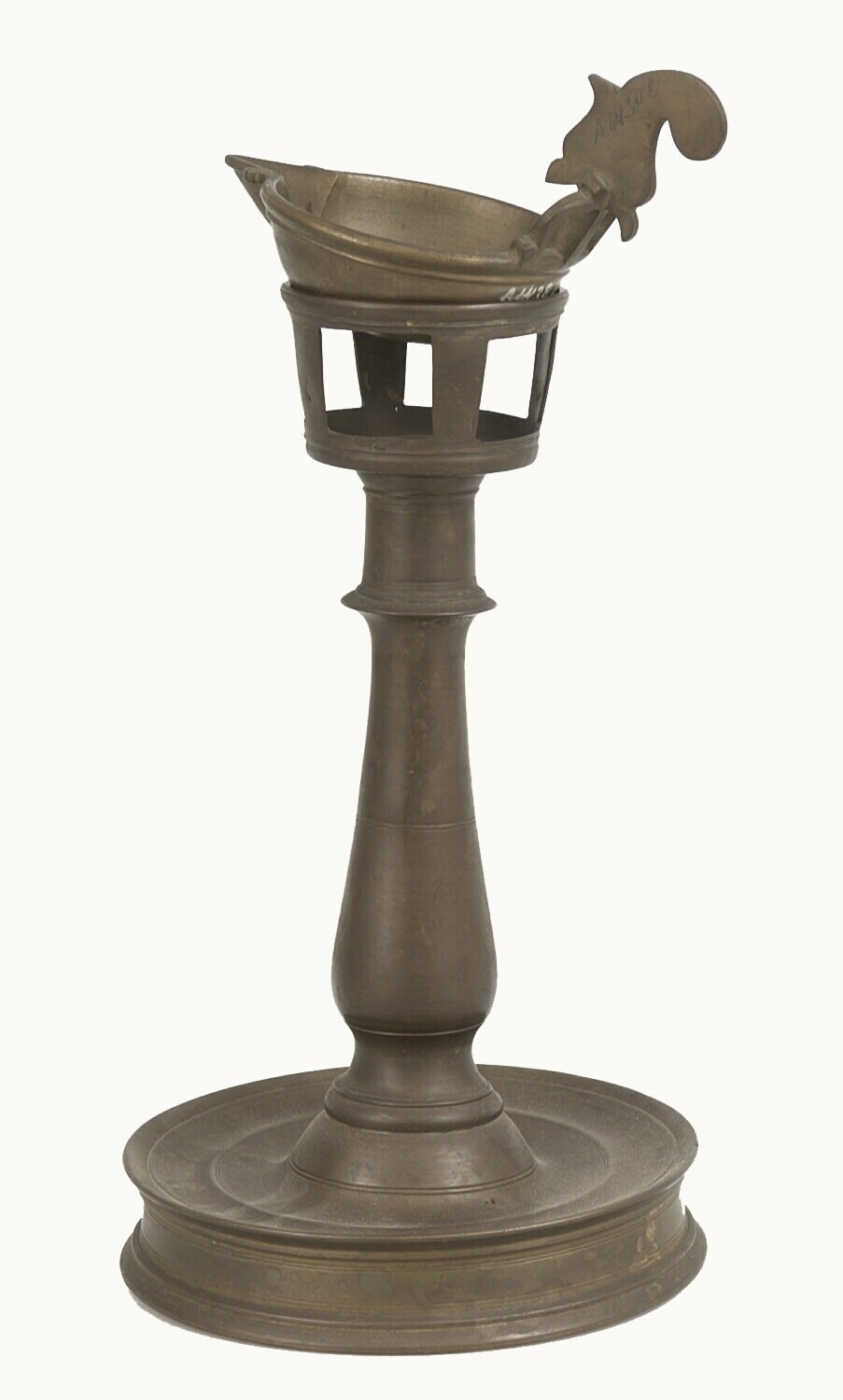 Achterplaat van een messing olielamp
