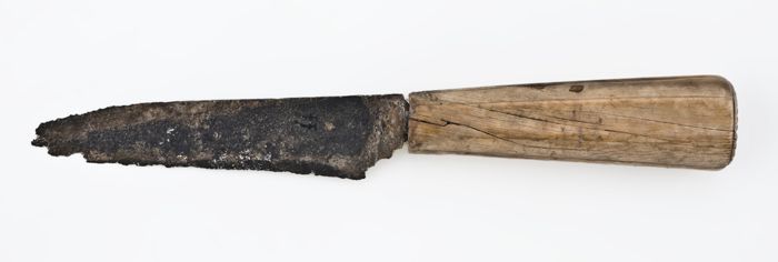 Mes met breed, vrij kort lemmet en benen heft met ge...