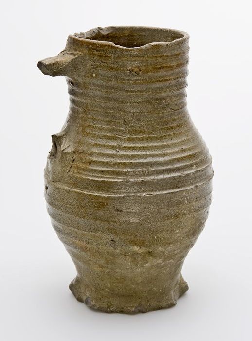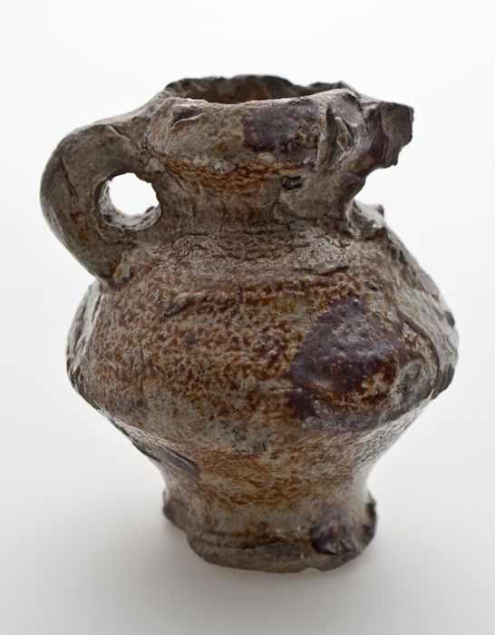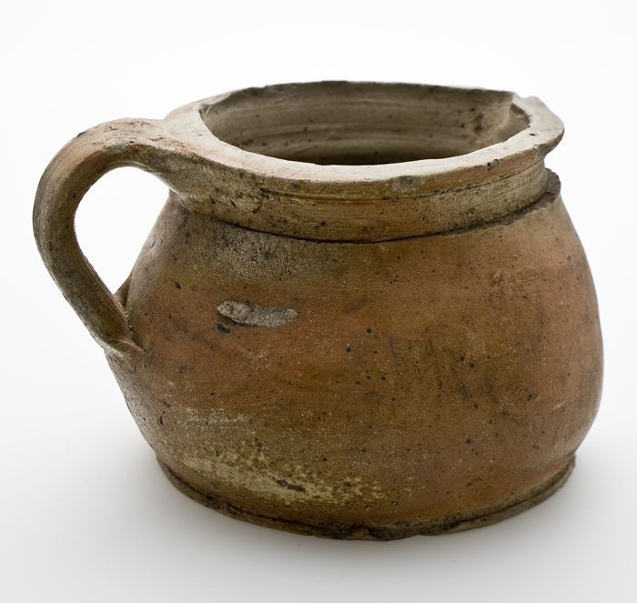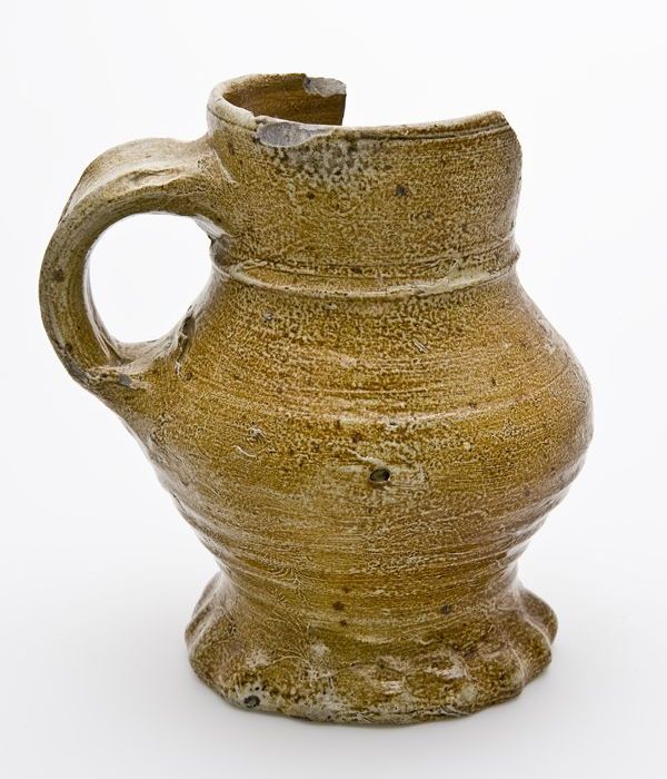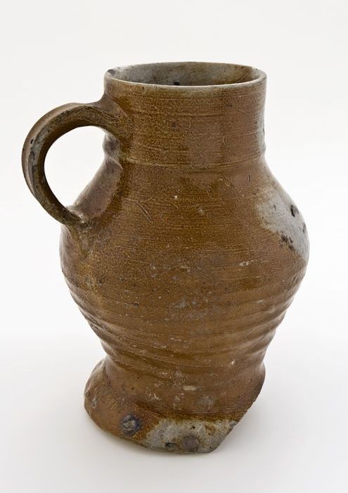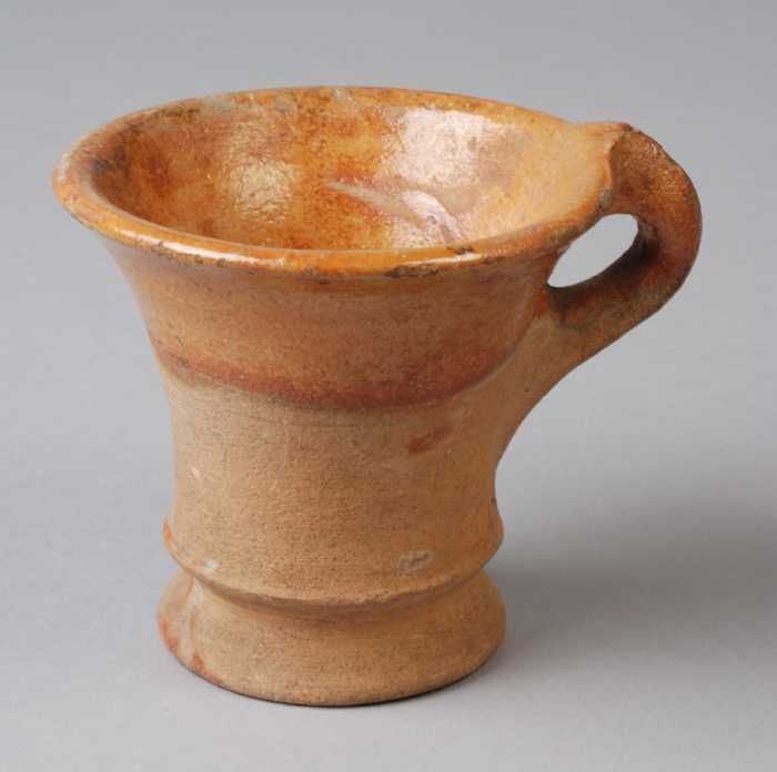 Steengoed kan of beker met schenklip en oor, in de v...