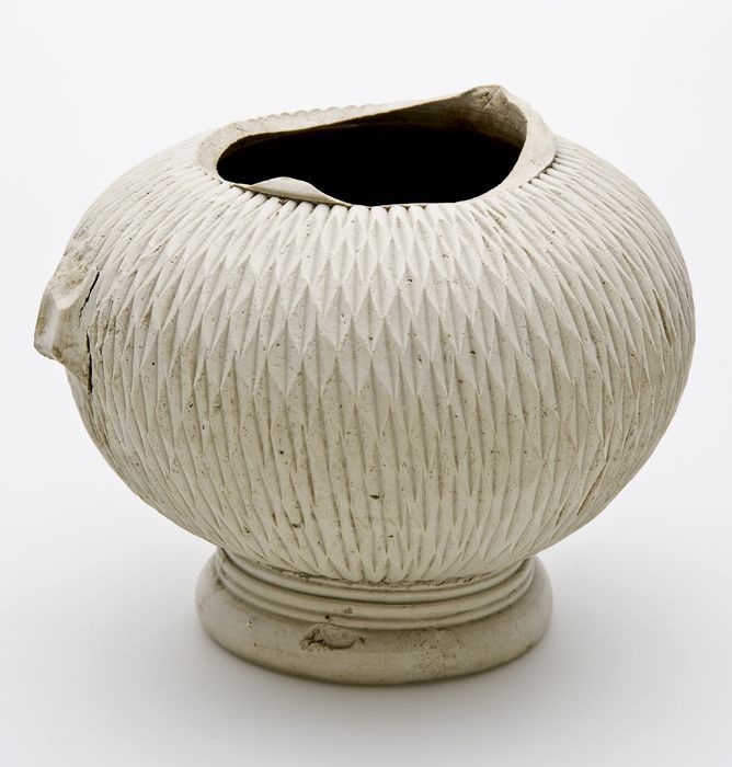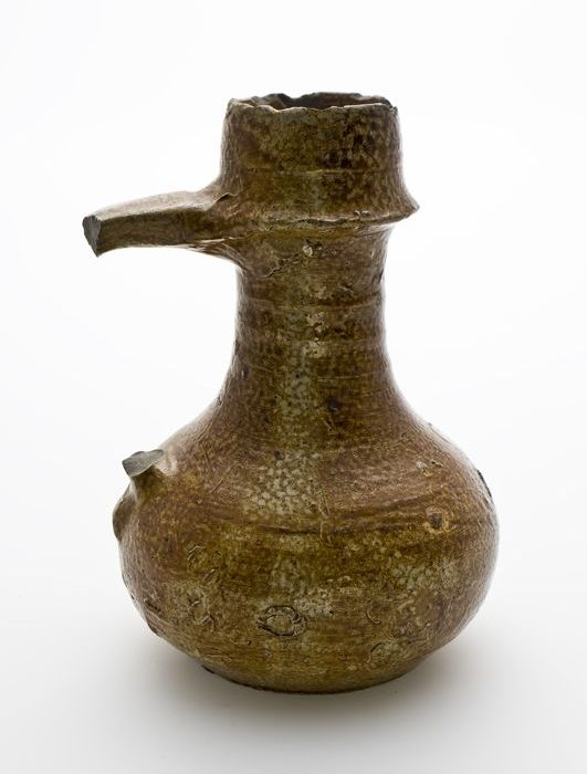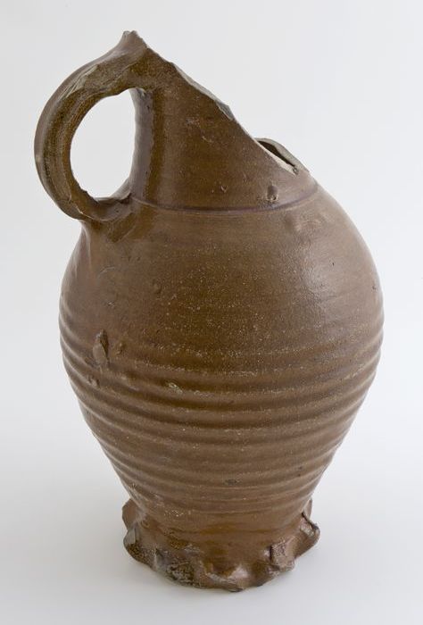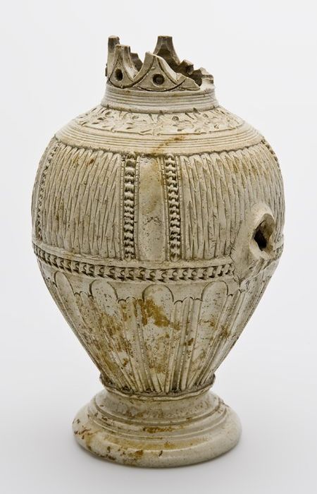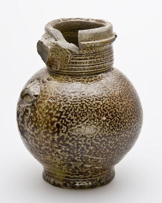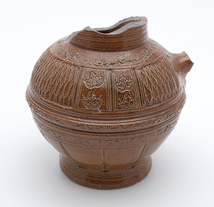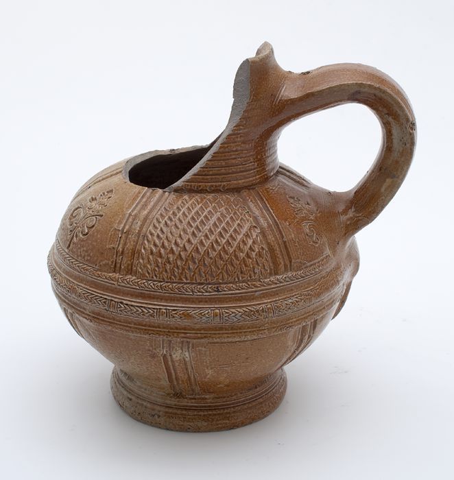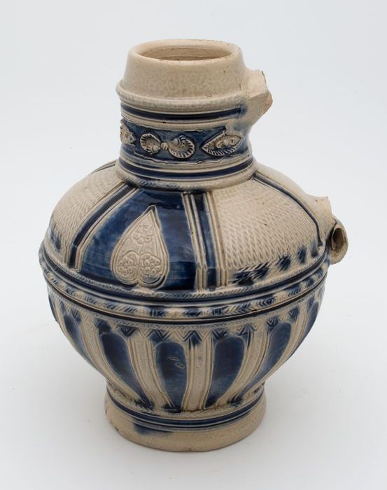 Steengoed kan met schenklip en oor, met uitgespaard ...