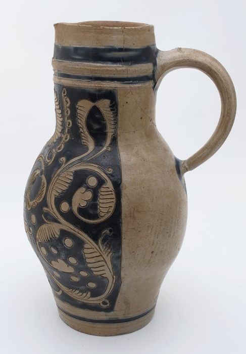 Steengoed kruik met op schouder kerfsnede-decor, ges...