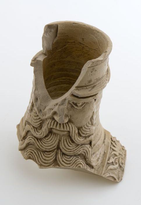 Grijs halsfragment van baardmankruik met smalle frie...