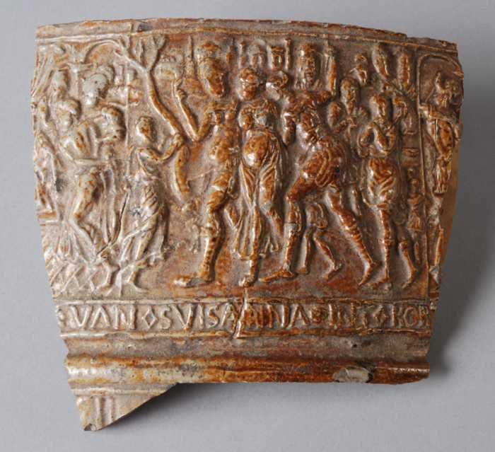 Steengoed kan rond buik drie medaillons waarbinnen r...