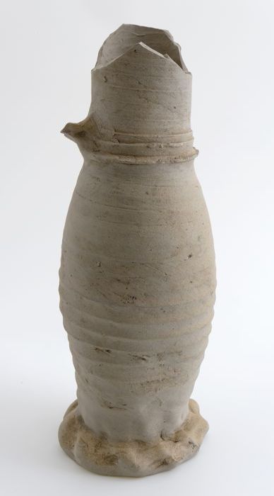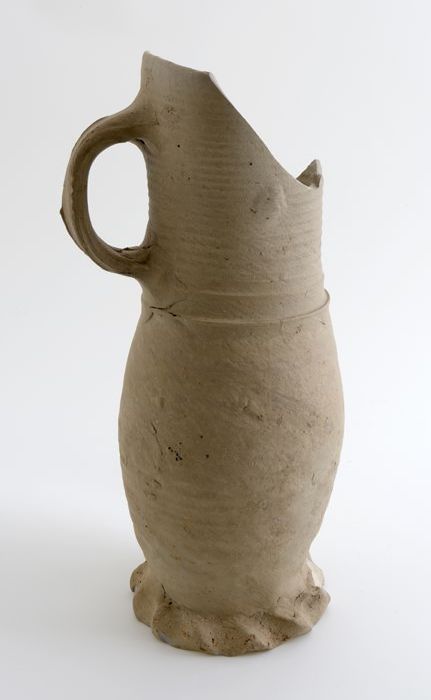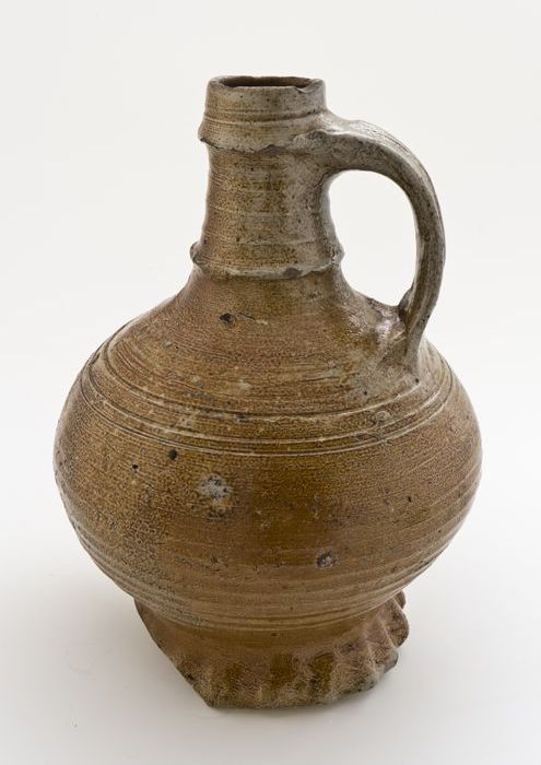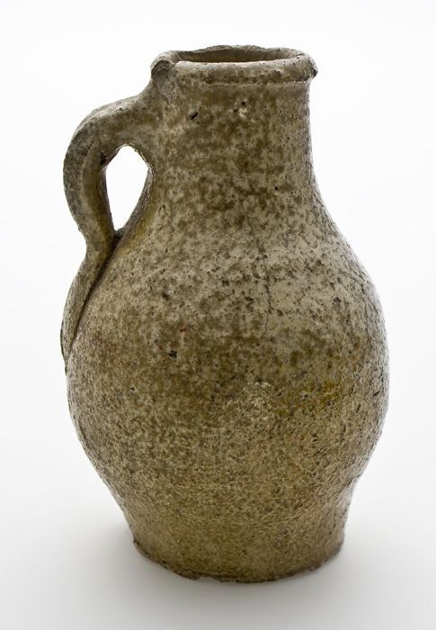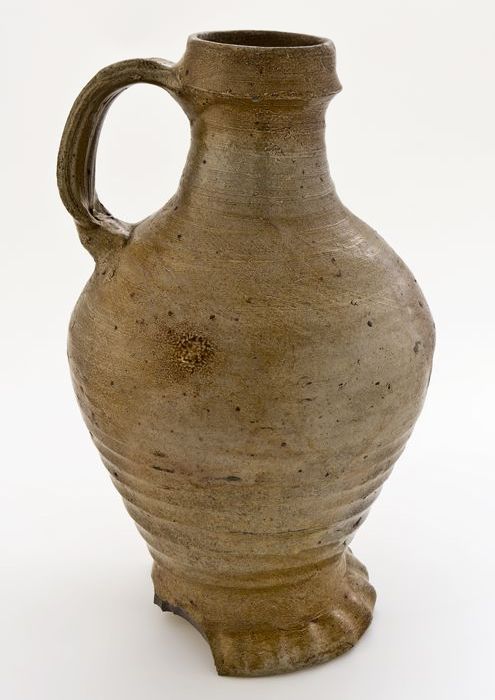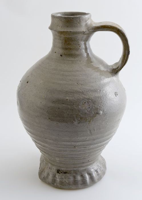 Grijze kruik met geknepen voetrand, steengoed, profi...