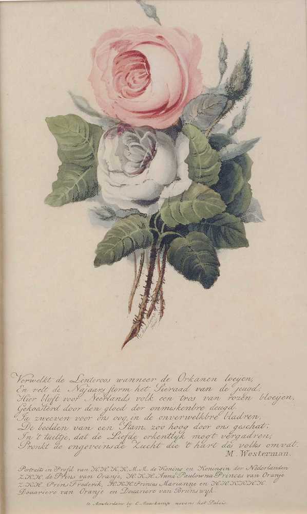Rozen en gedicht tgv huwelijk Willem II en Anna Paulona