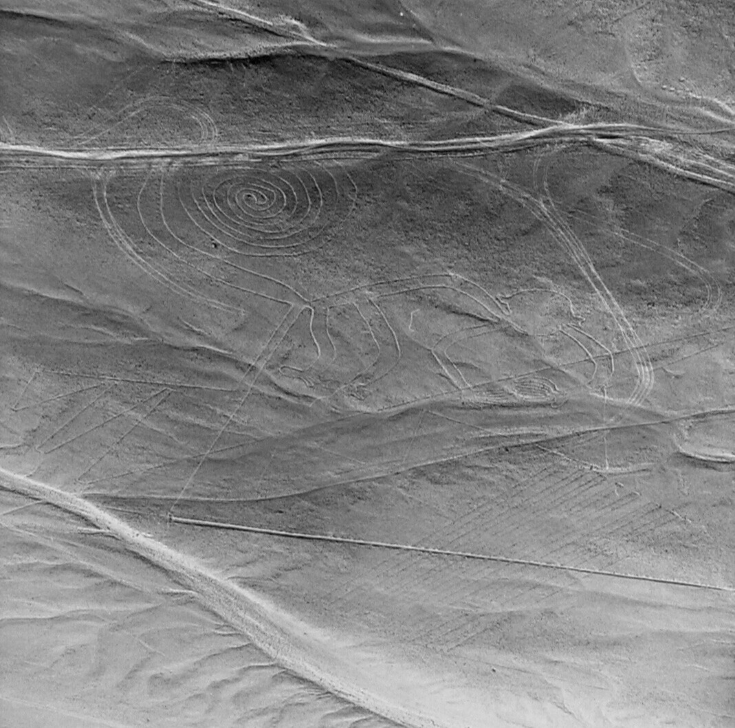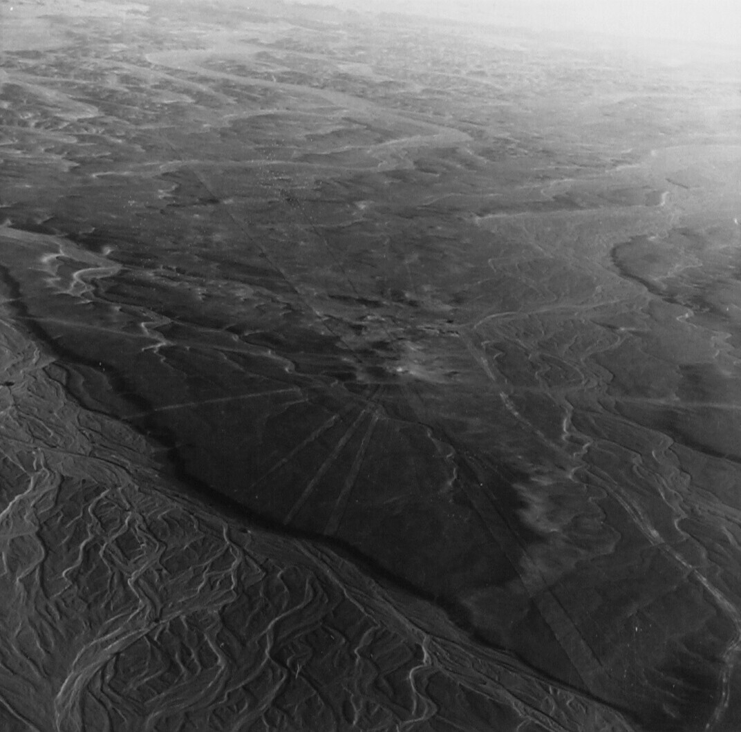 Luchtopname van de Nasca lijnen in het woestijngebied