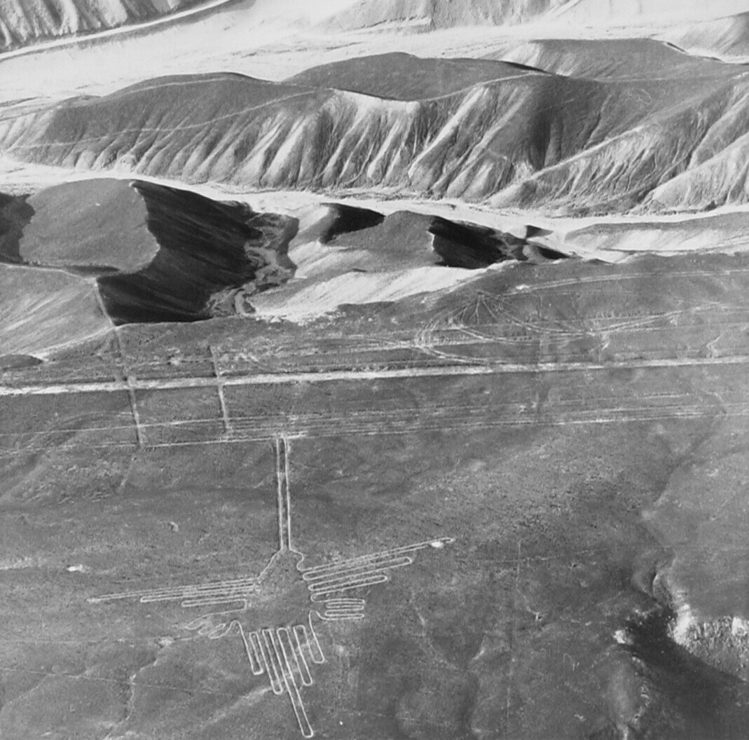 Luchtopname van de Nasca tekeningen. De kolibrie