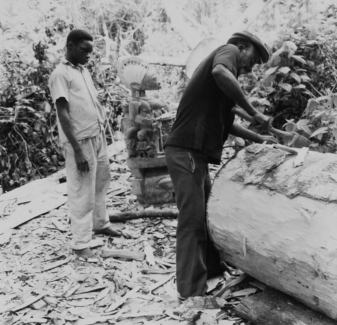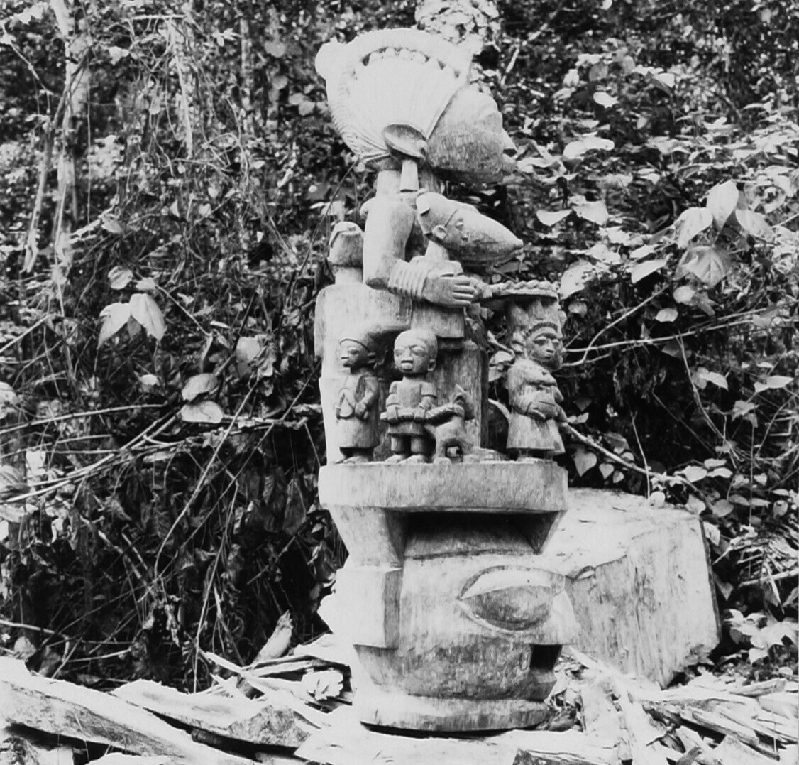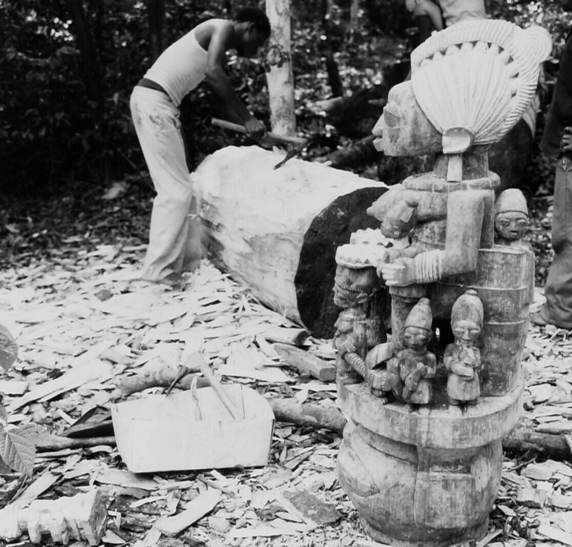 Een Epa masker staat te drogen in het bos bij Aran Orin