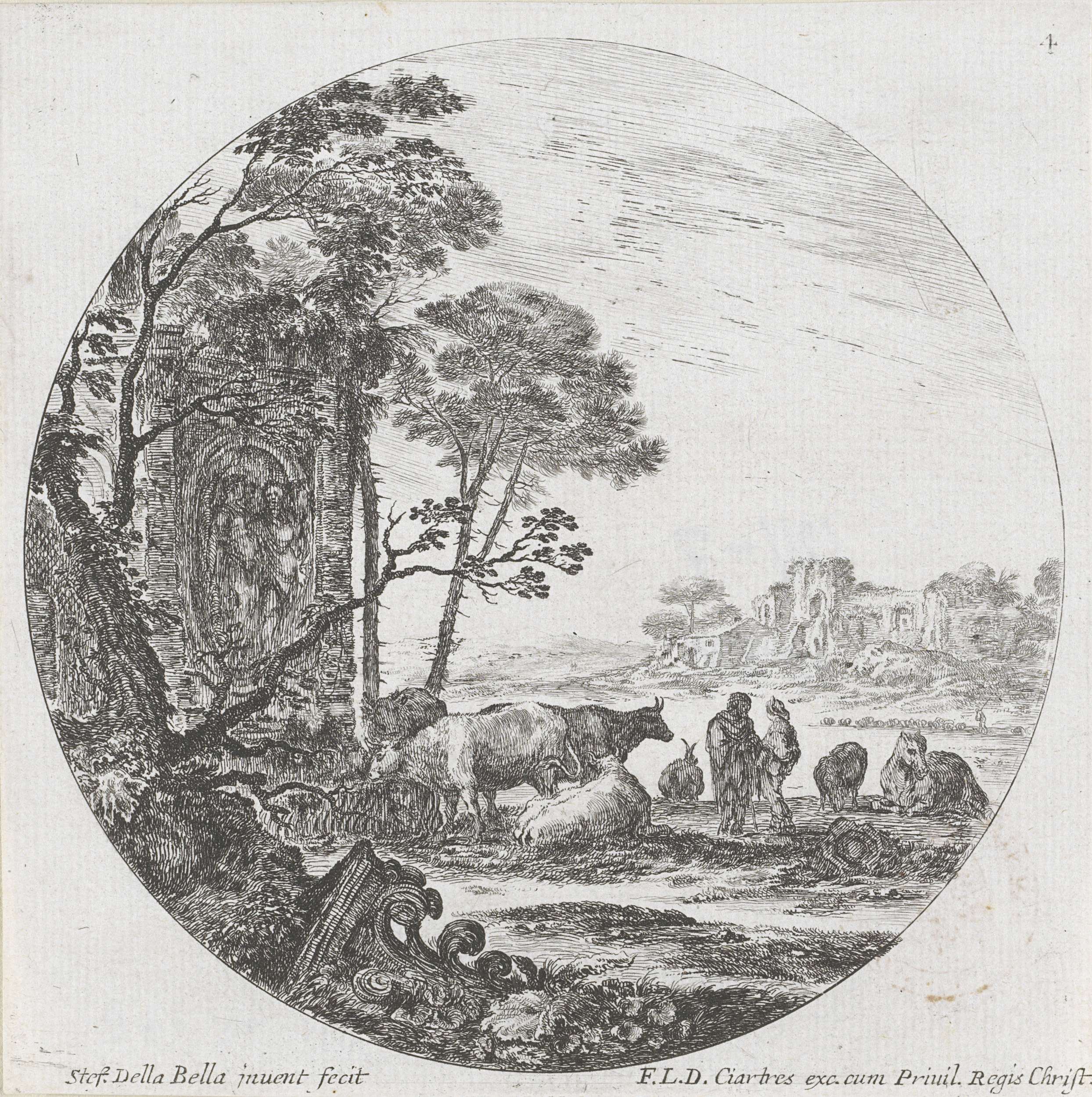 Landschap met kudde en Korinthisch kapiteel
