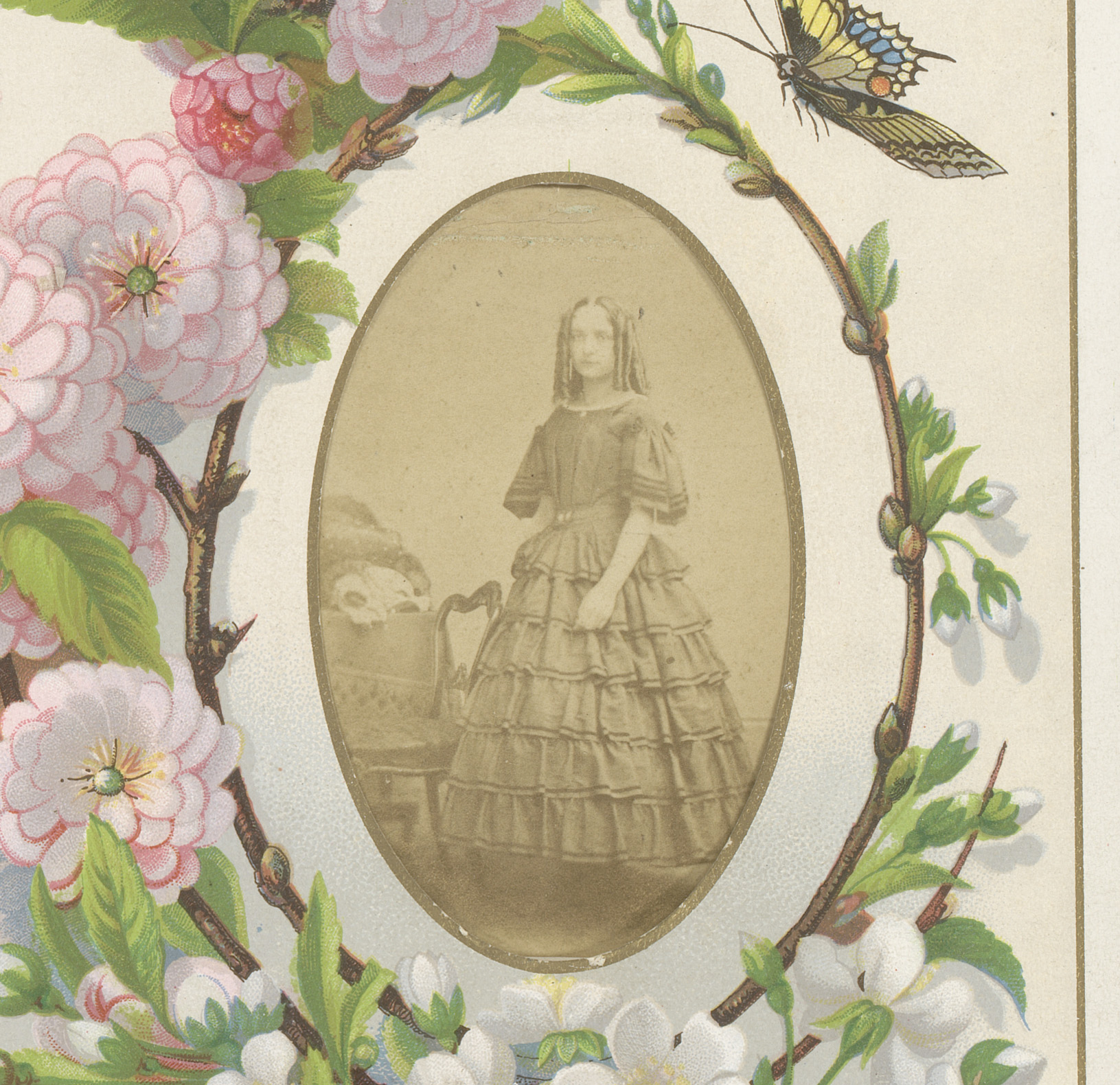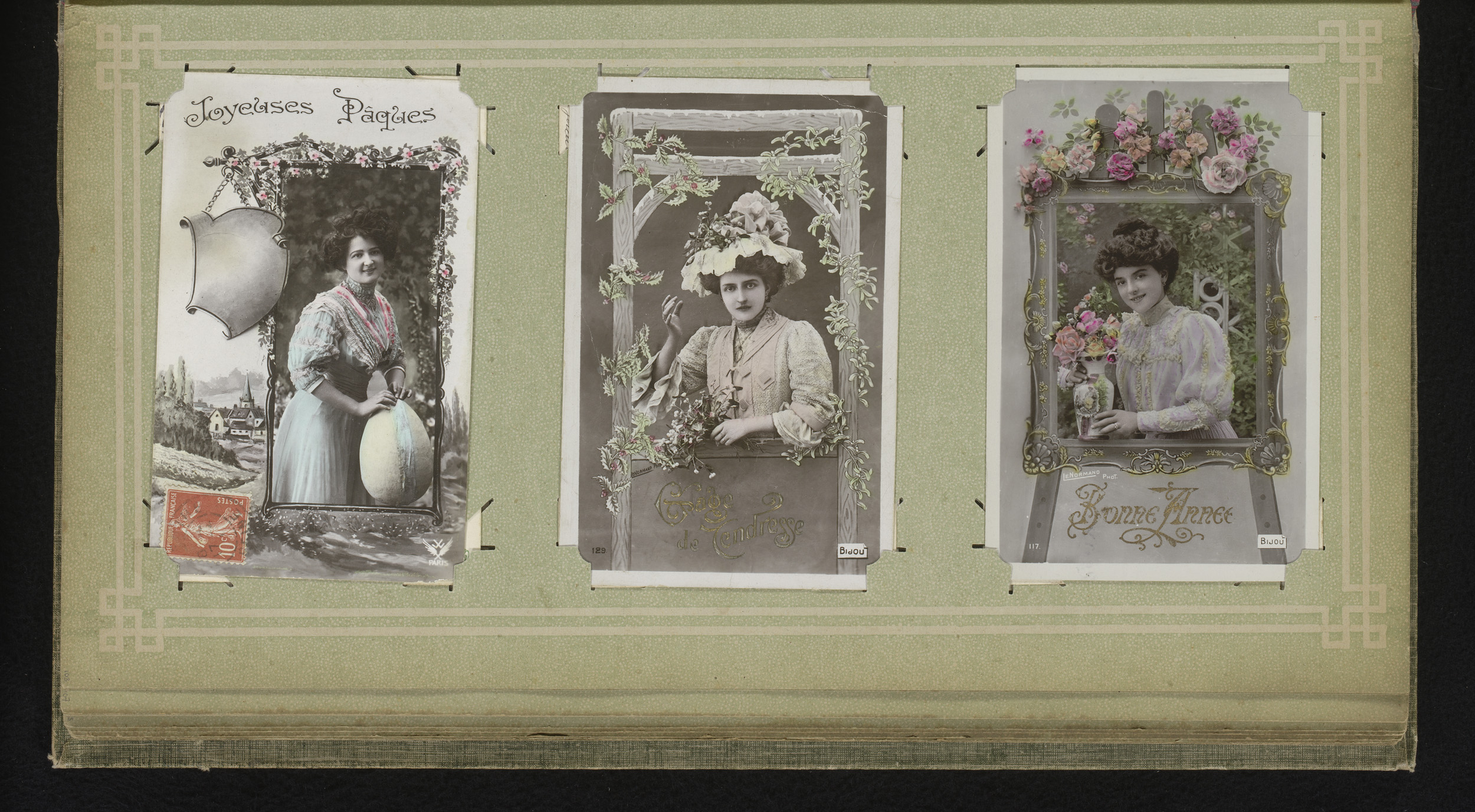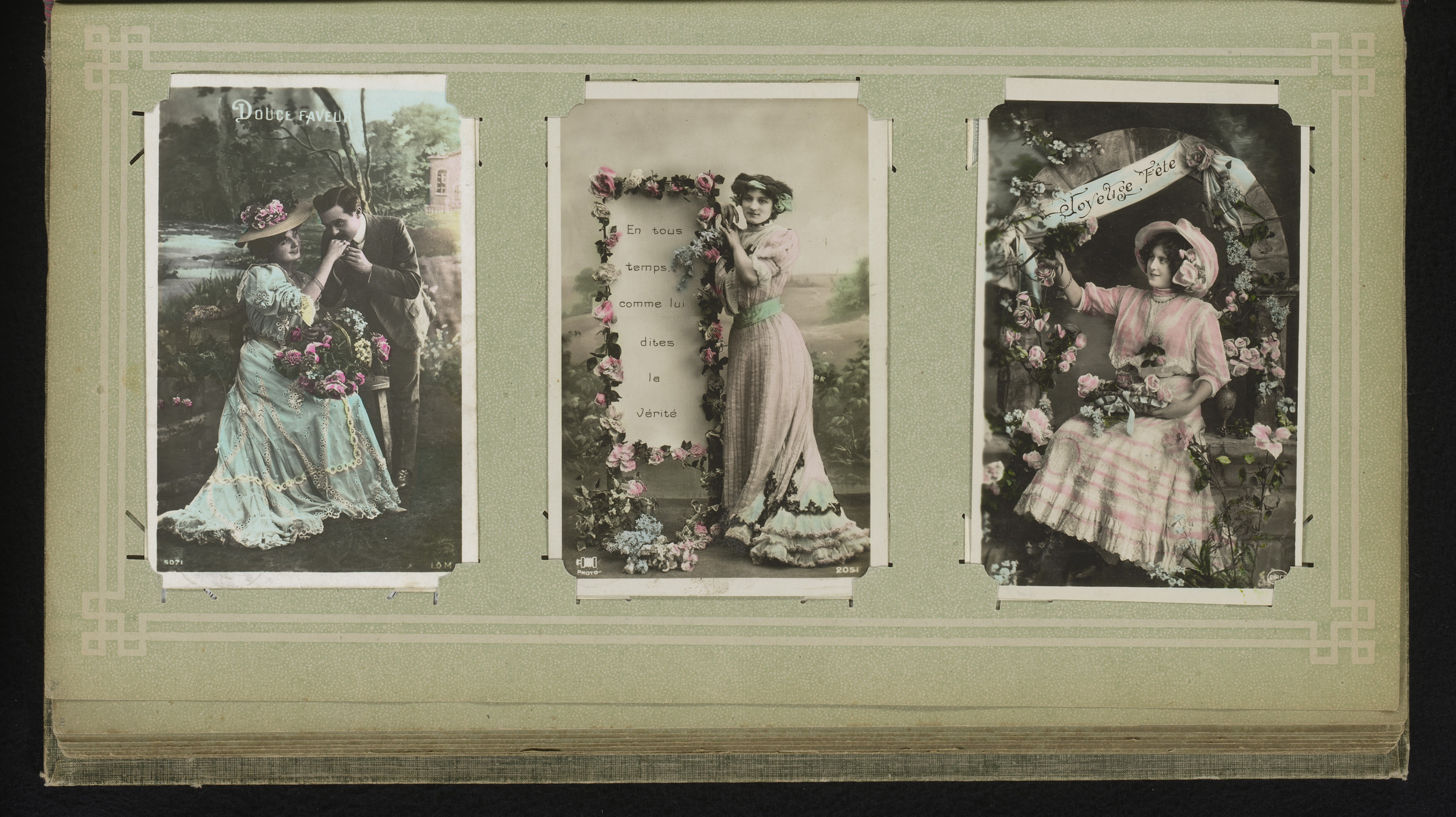 Drie portretten van jonge vrouwen met bloemen