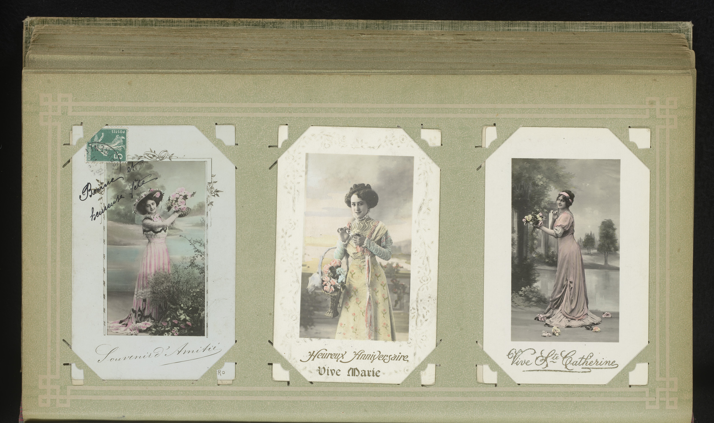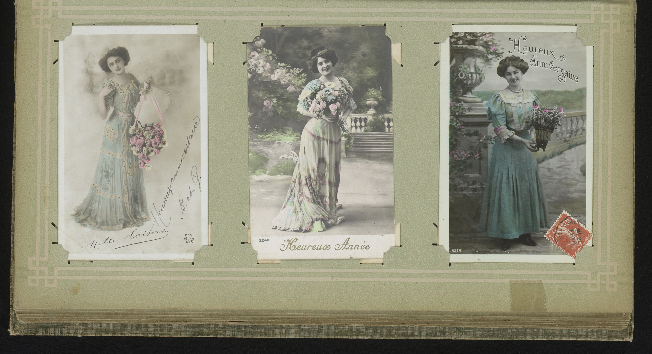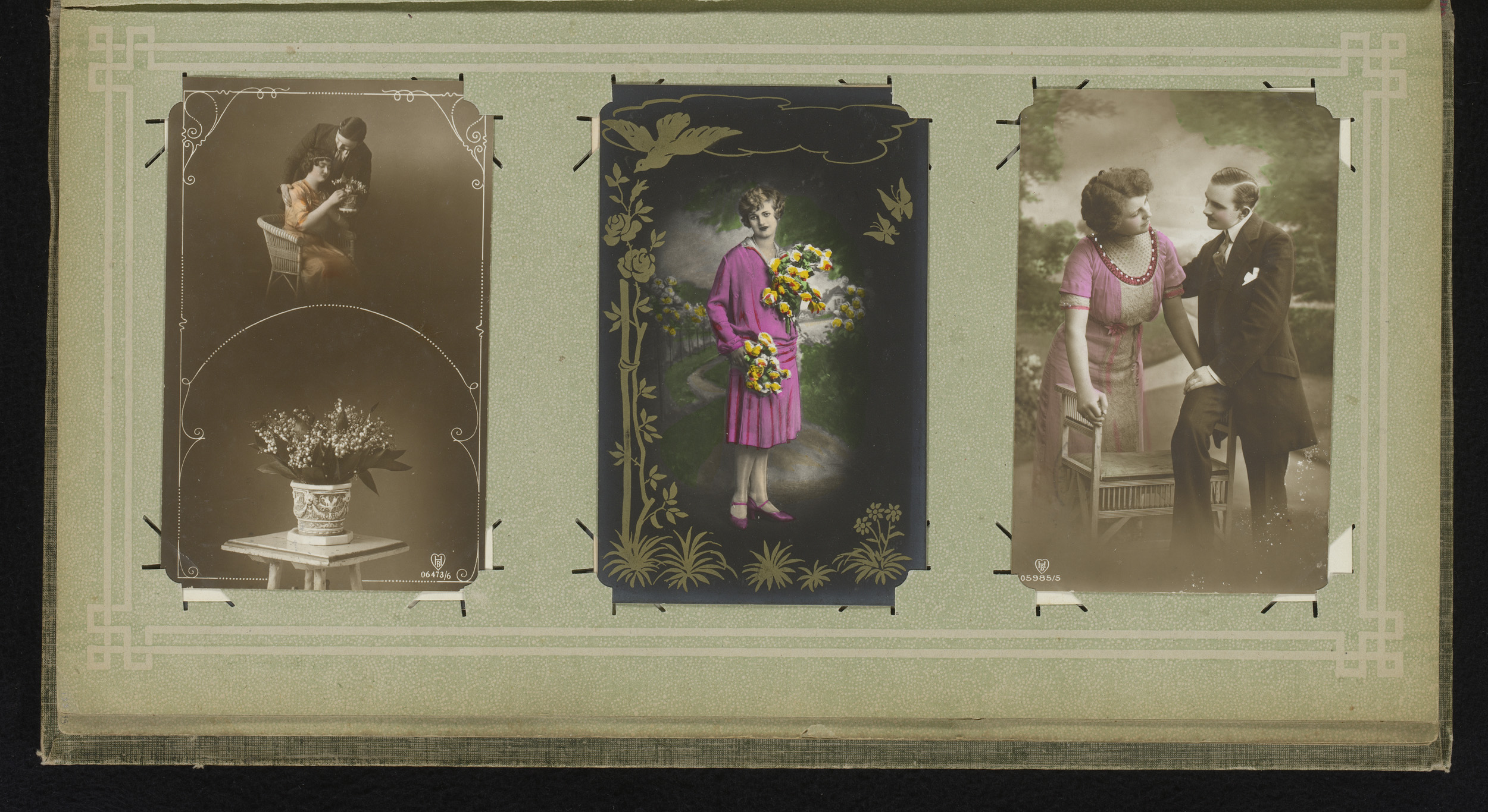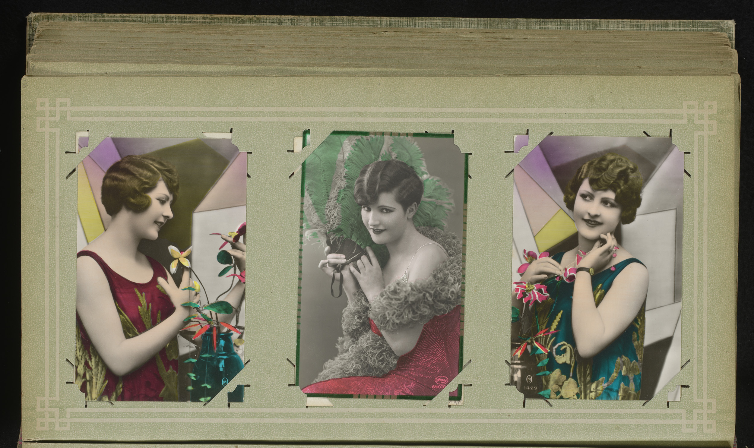 Drie portretten van vrouwen met bloemen