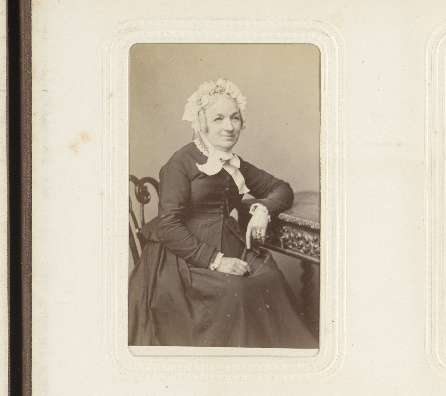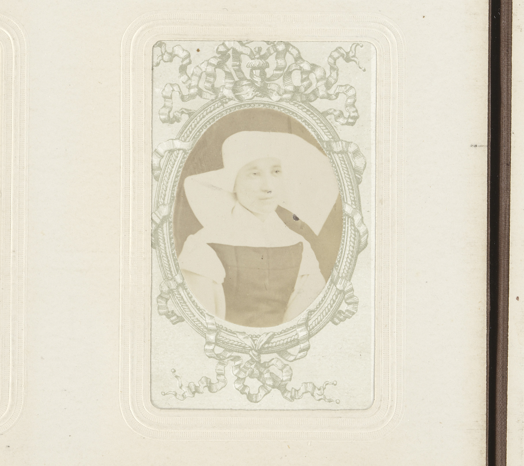 Portret van een vrouw met een witte kap