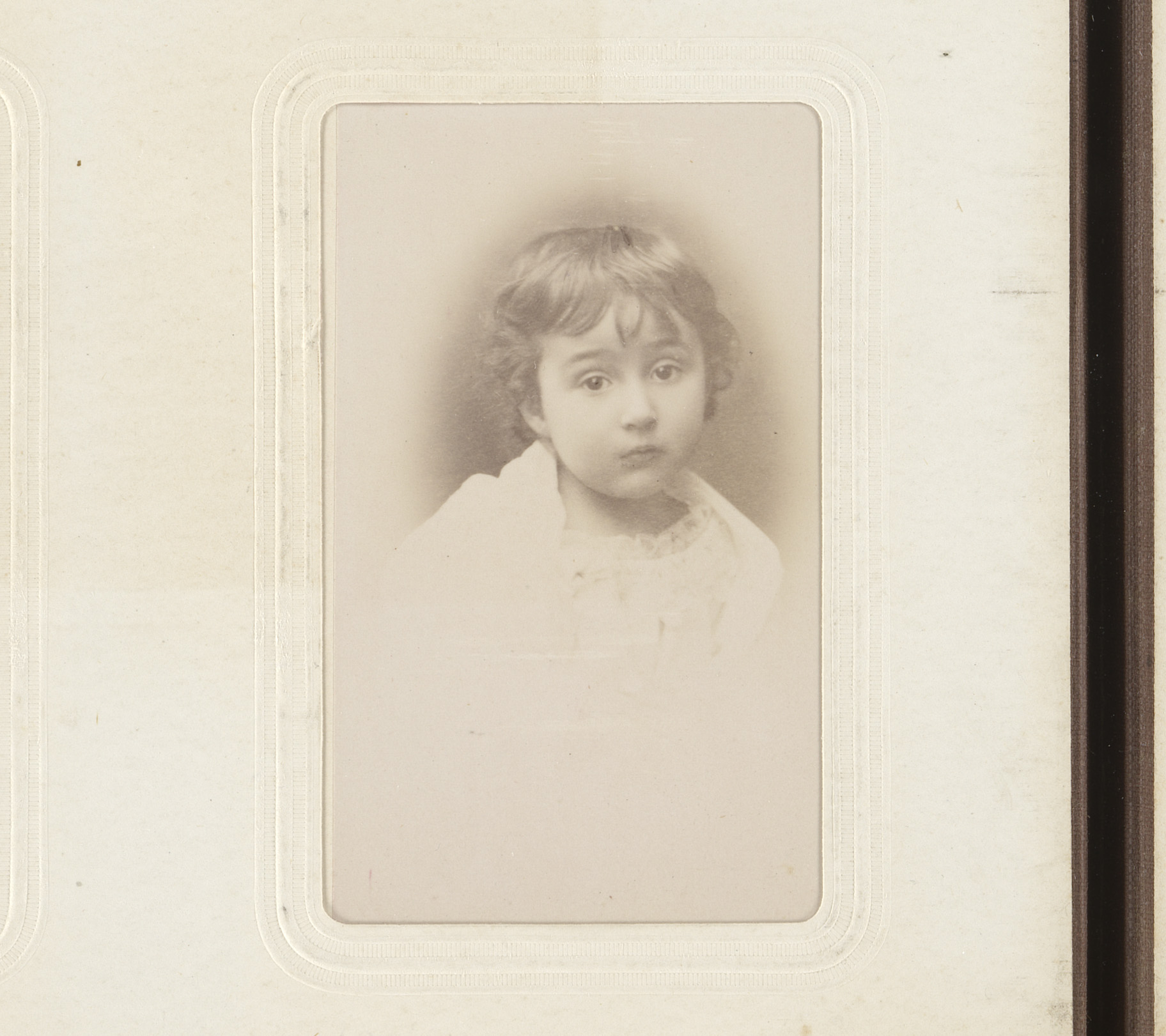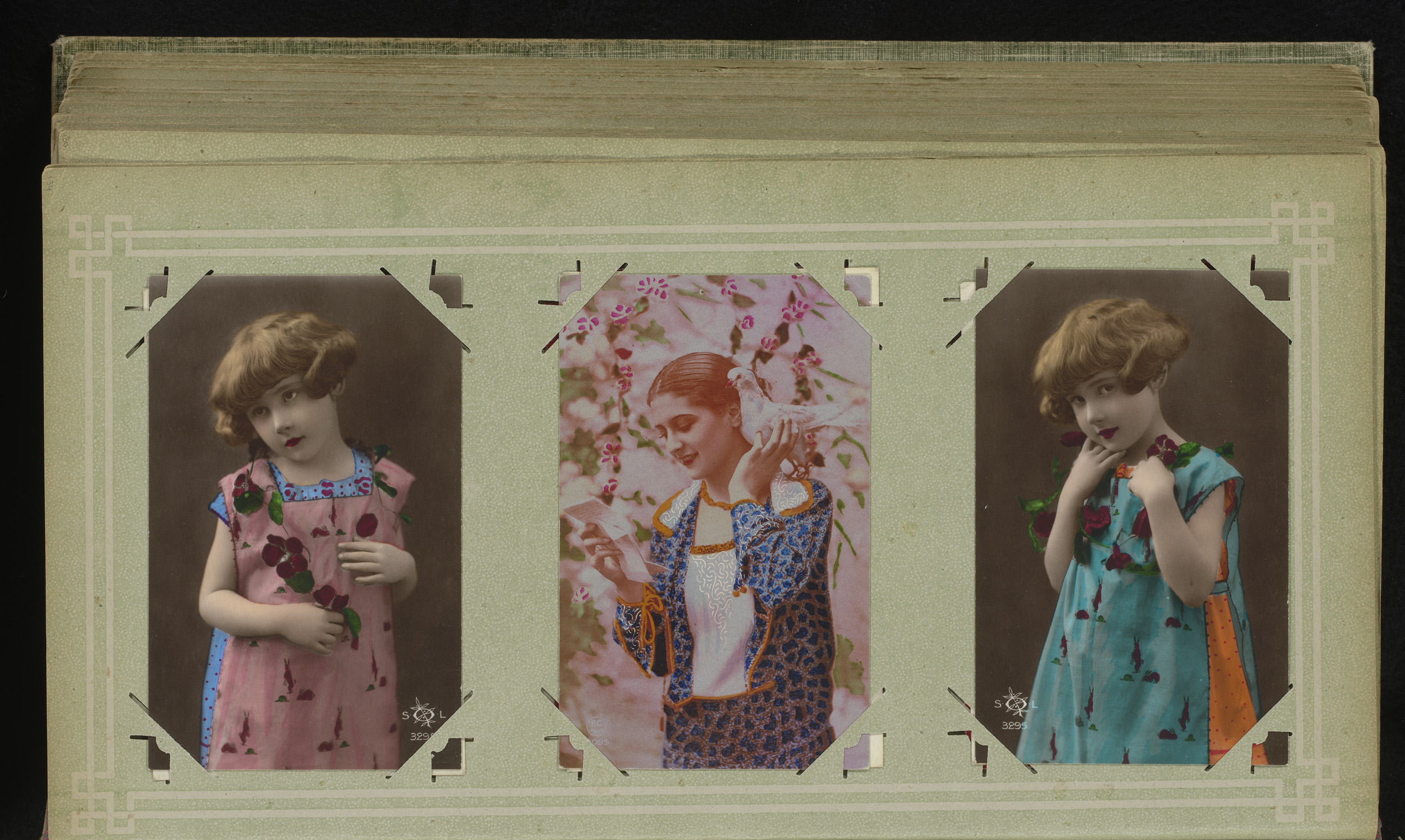 Drie portretten van meisjes, waarvan één met een wit...
