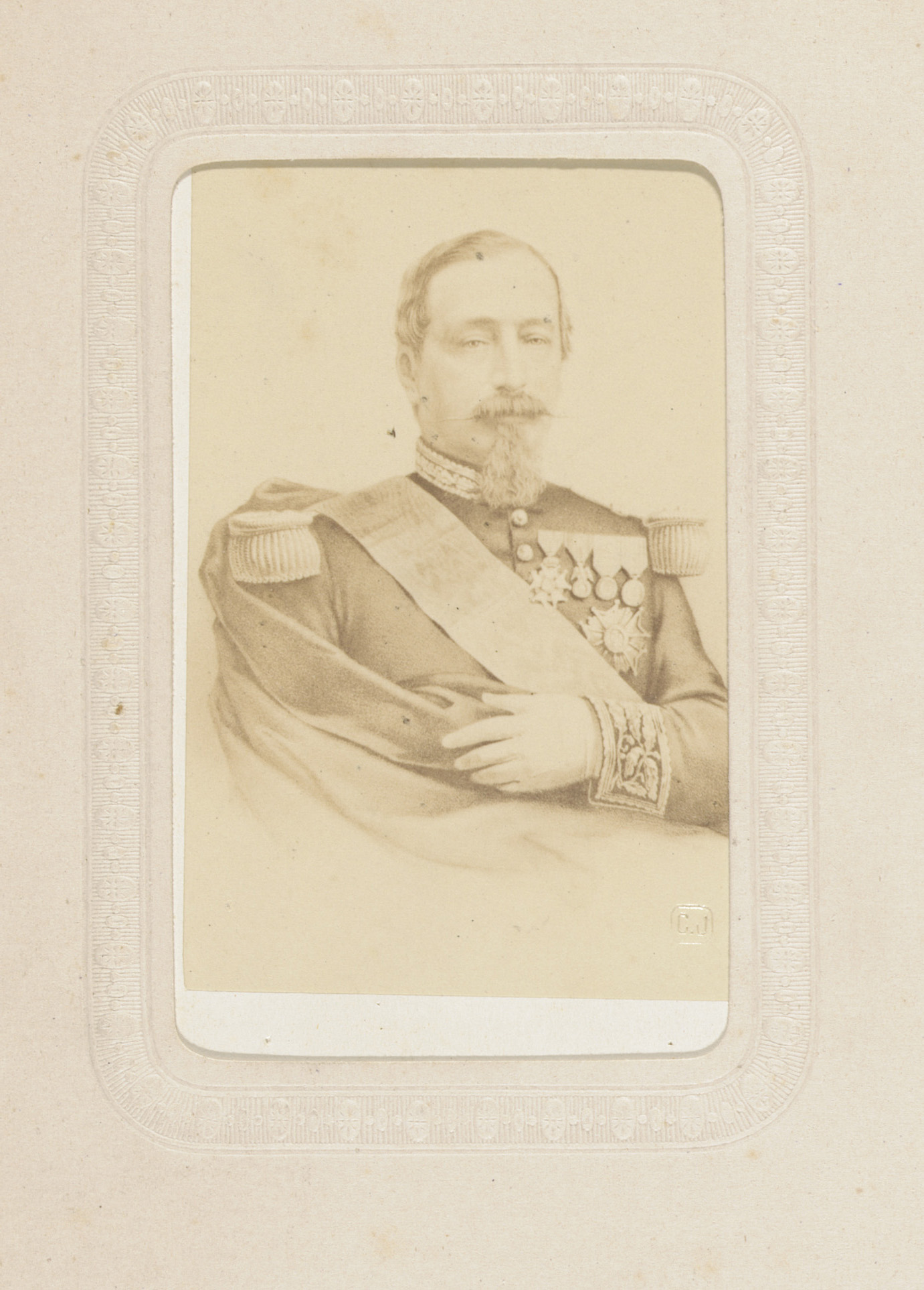 Fotoreproductie van een portret van een man in milit...