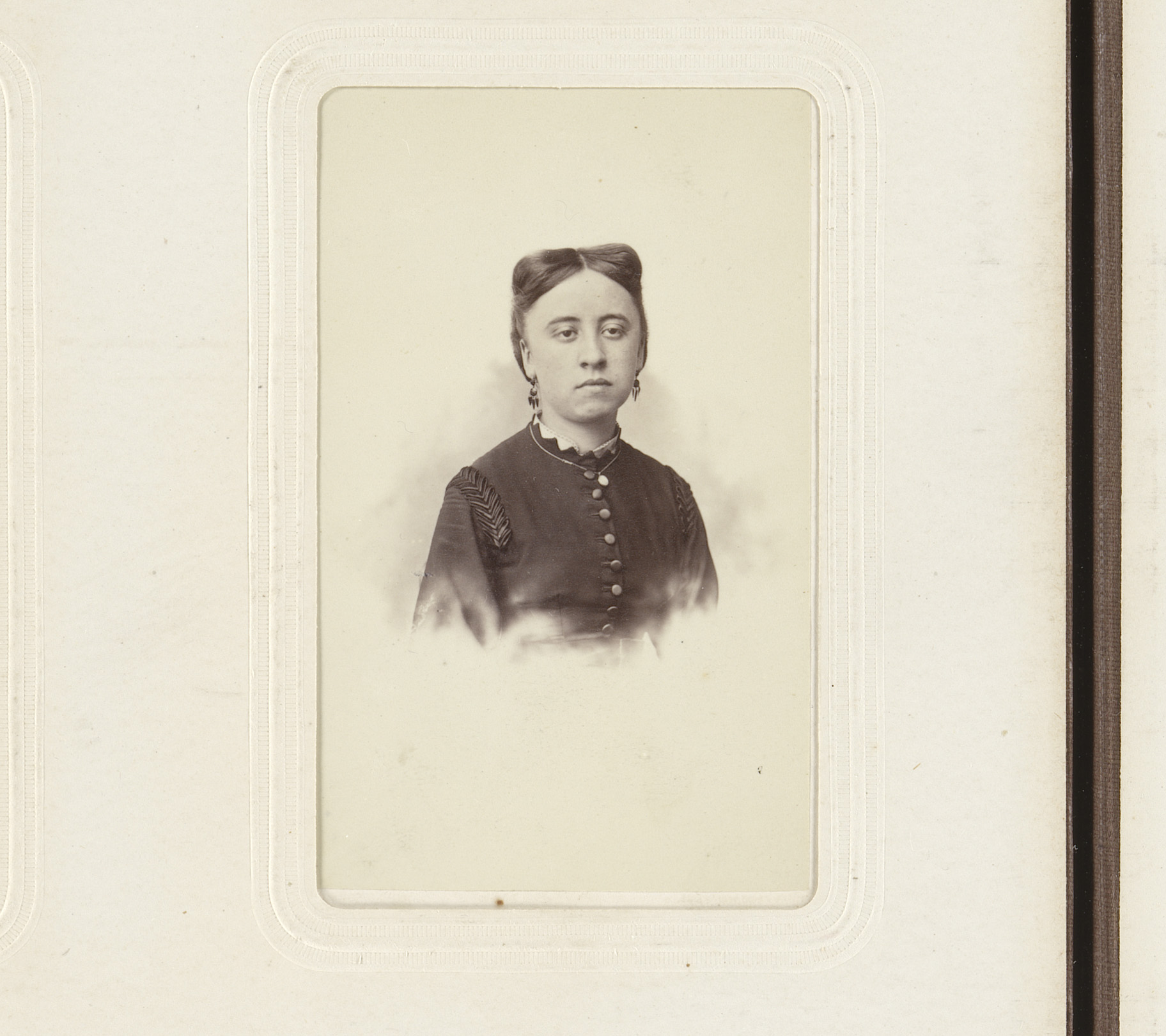 Portret van een vrouw met hooggesloten jurk