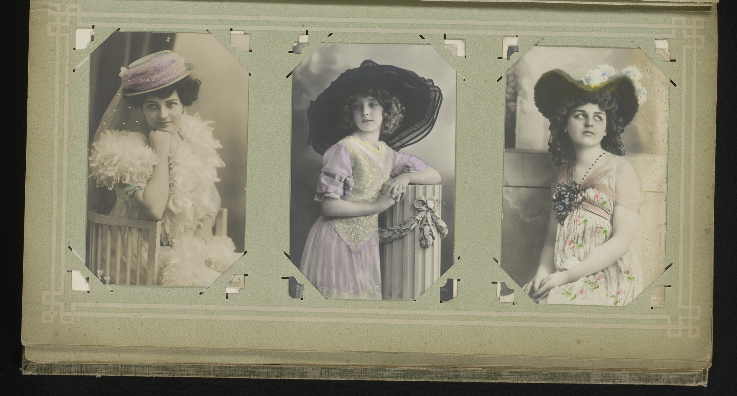 Drie portretten van meisjes met hoeden