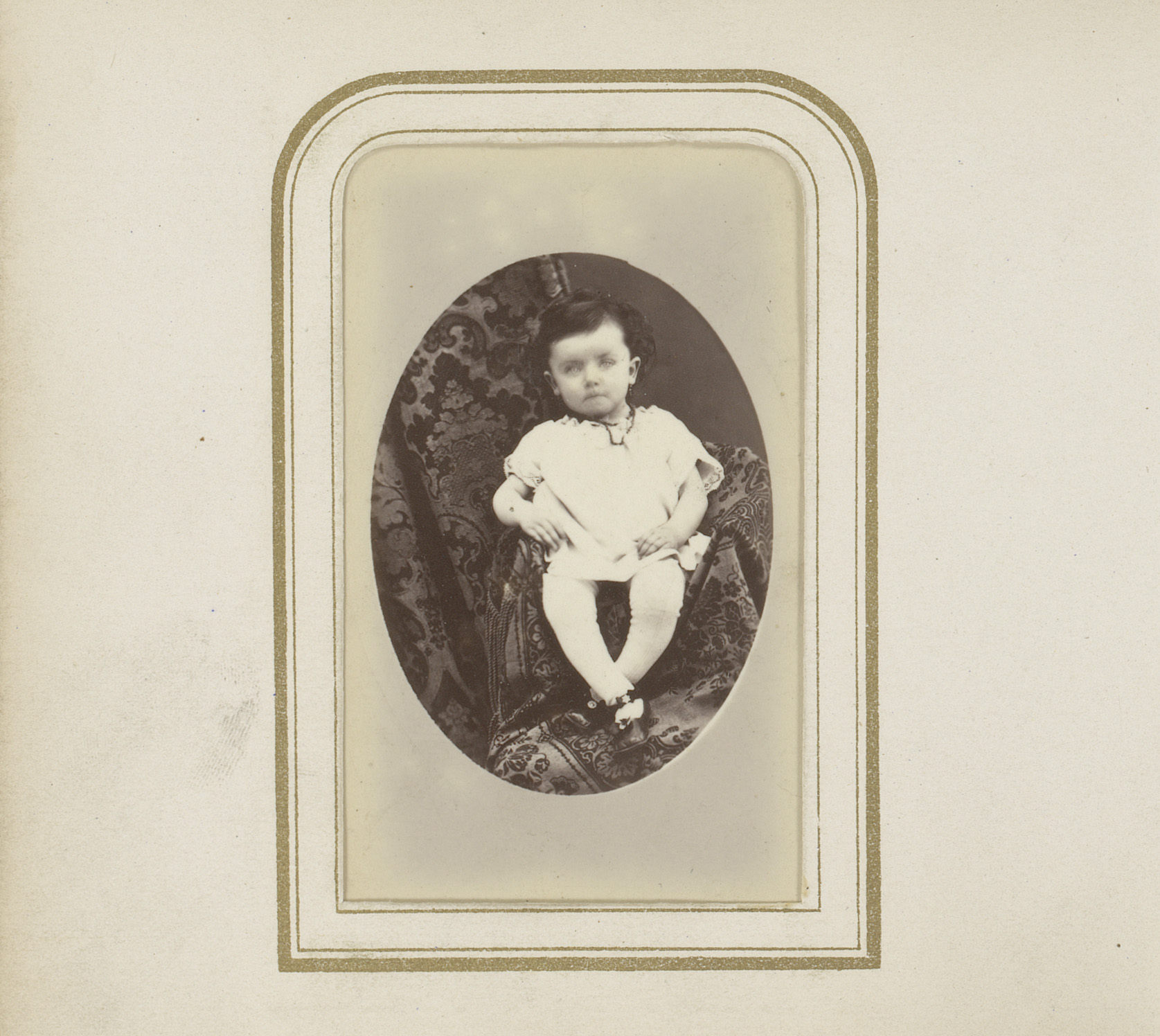 Portret van een kind, zittend op een stoel