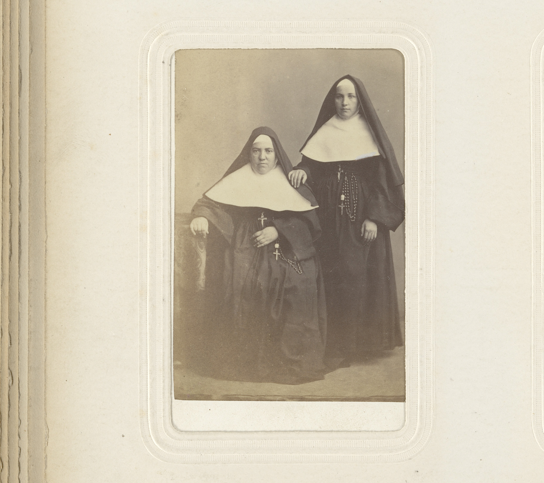 Portret van twee nonnen, waarvan er een zit en de an...