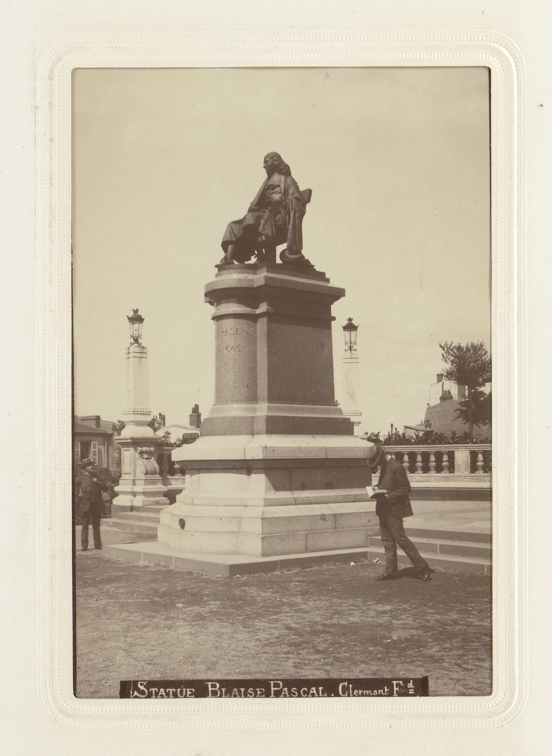 Gezicht op het standbeeld van Blaise Pascal in Clerm...