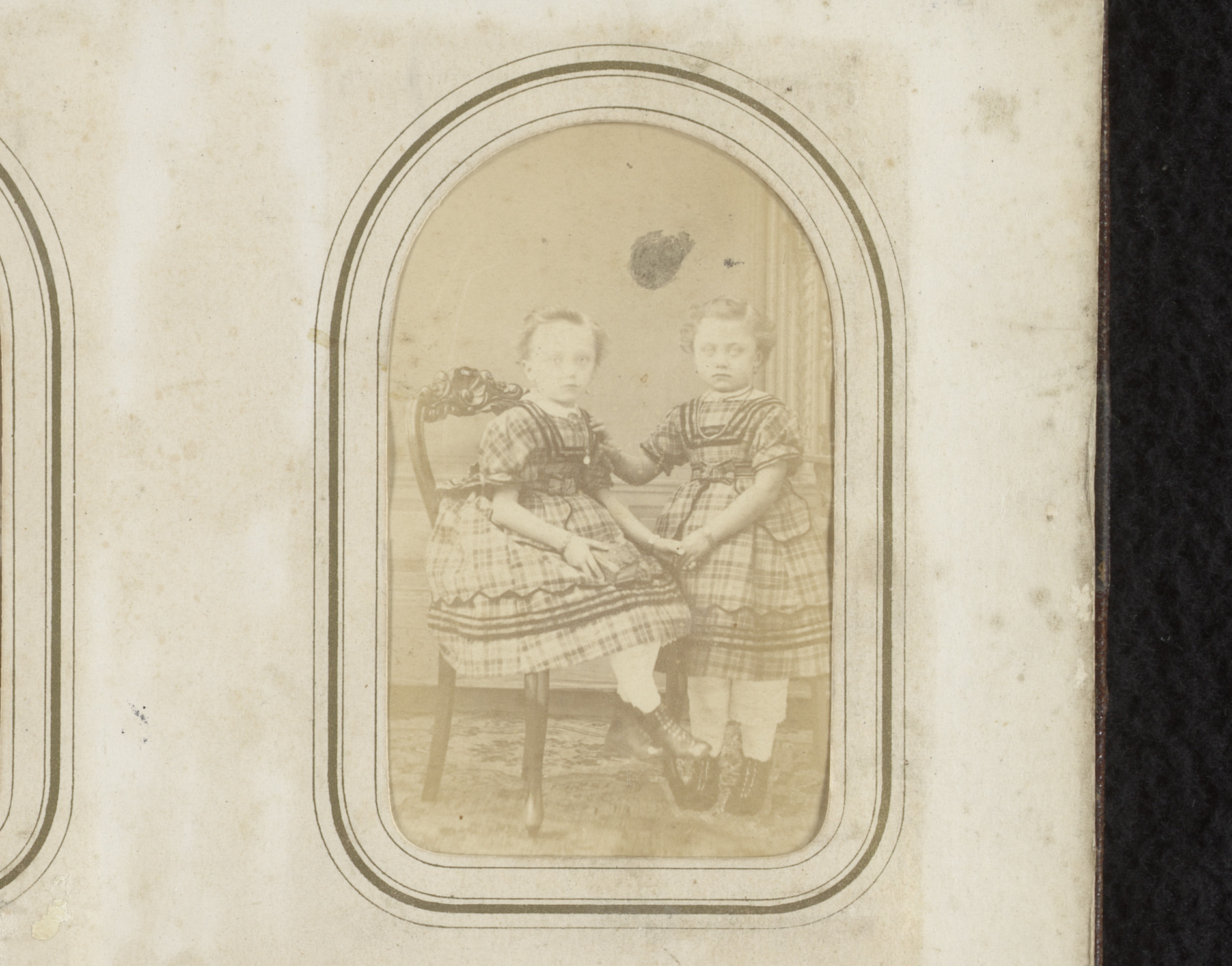 Portret van een zittend meisje en een staand meisje