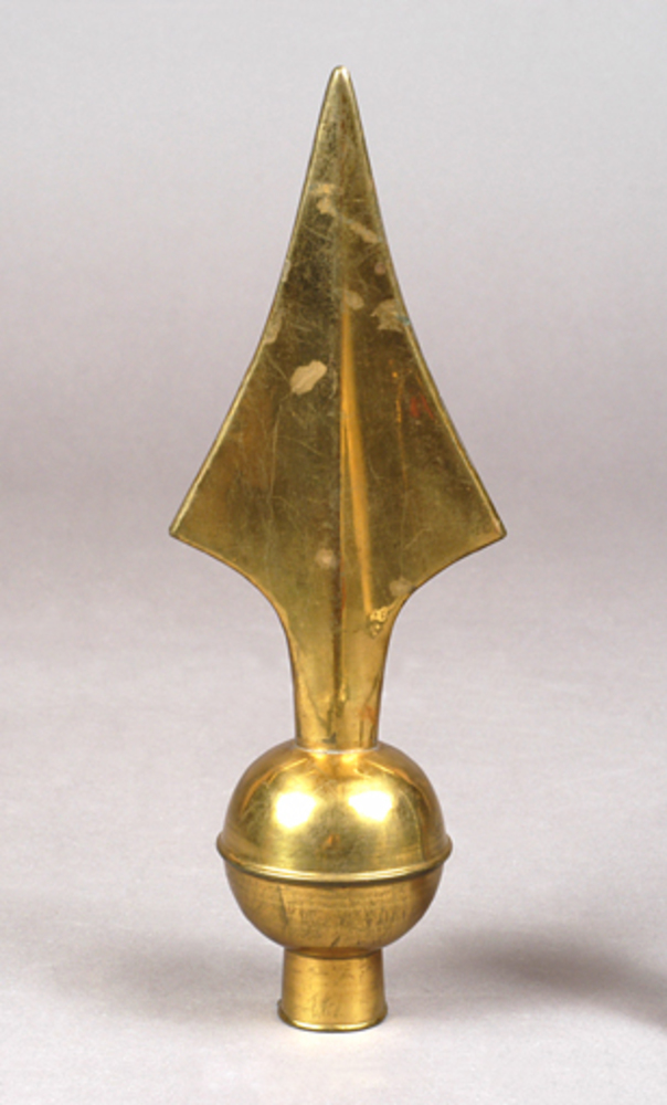 houten vaandelstok met messing versiering, begin 20e...