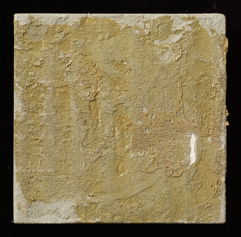 effen tegel van aardewerk met tinglazuur, groen-geel...