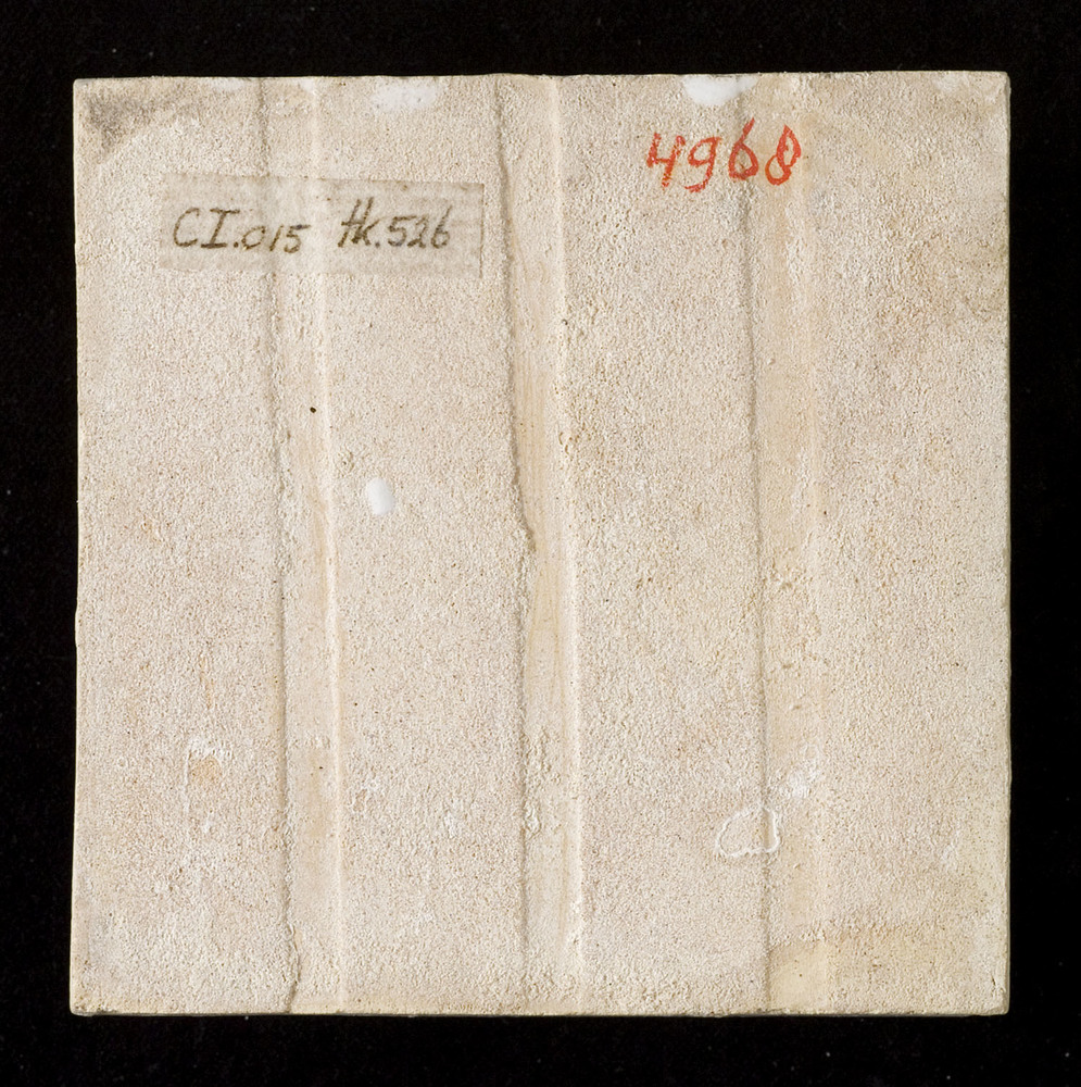 randtegel van keramiek met tinglazuur, voorstellende...