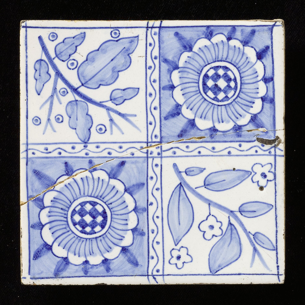 Tegel van keramiek, onderglazuur, voorstellende orna...