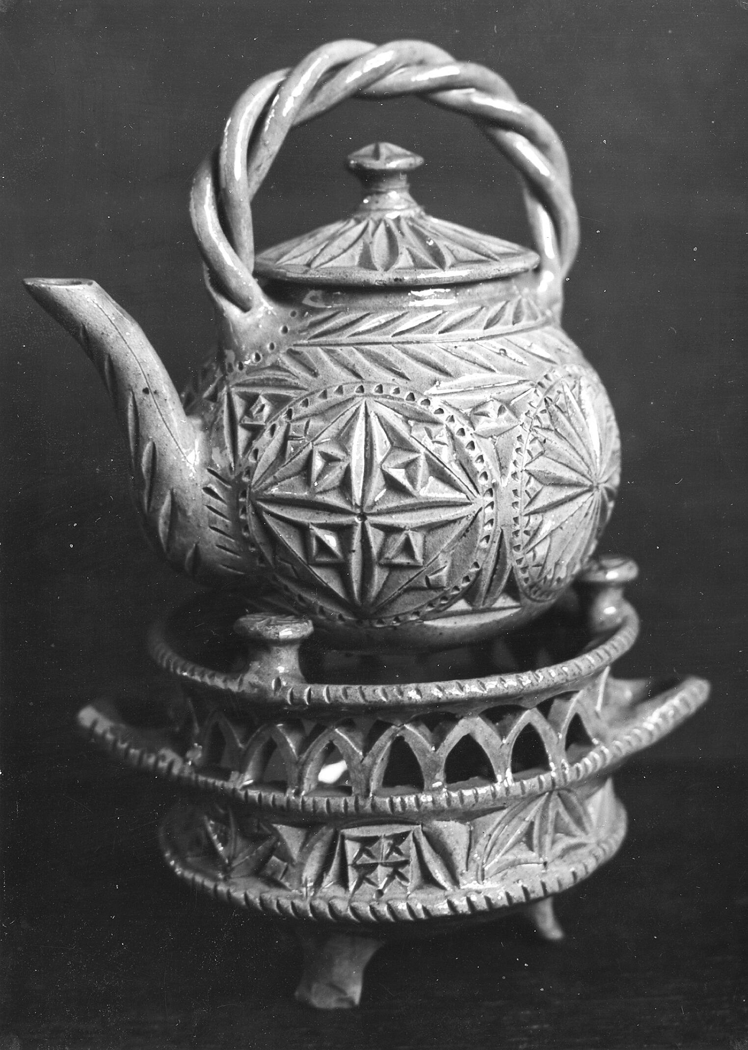 Theepot met komfoor, 1930 (zwart-wit foto)