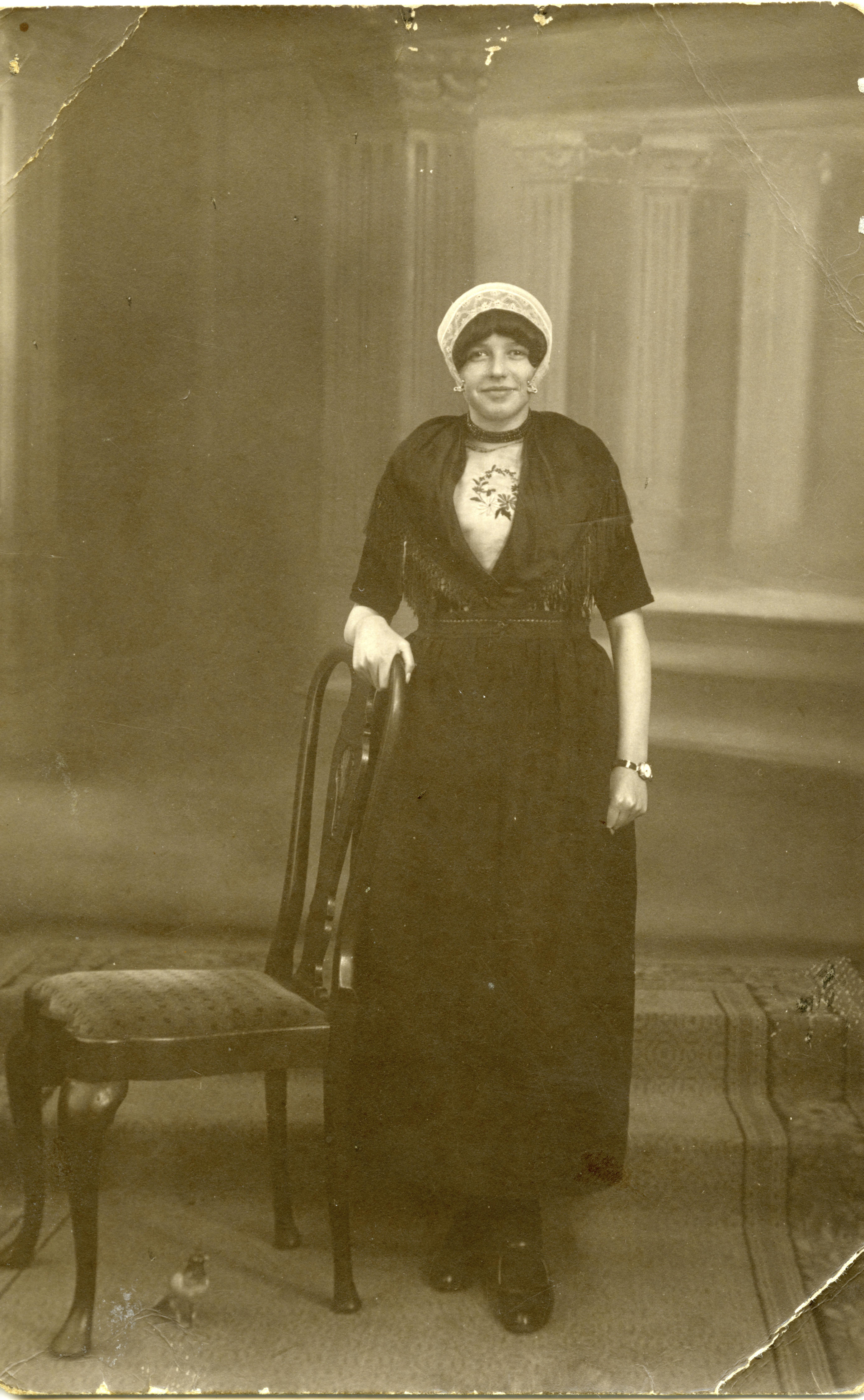Vrouw in Urker dracht, 1930 (zwart-wit foto)