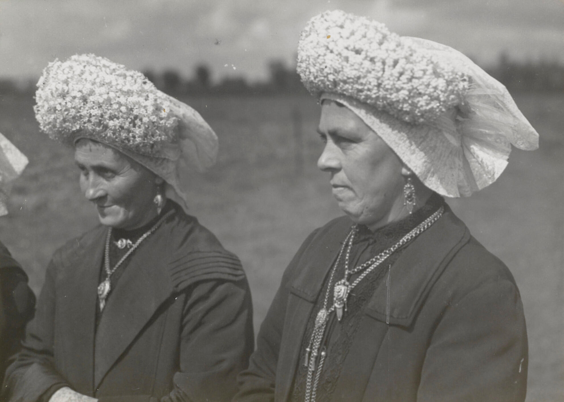 Vrouwen in dracht uit Roosendaal, 1930 (zwart-wit foto)