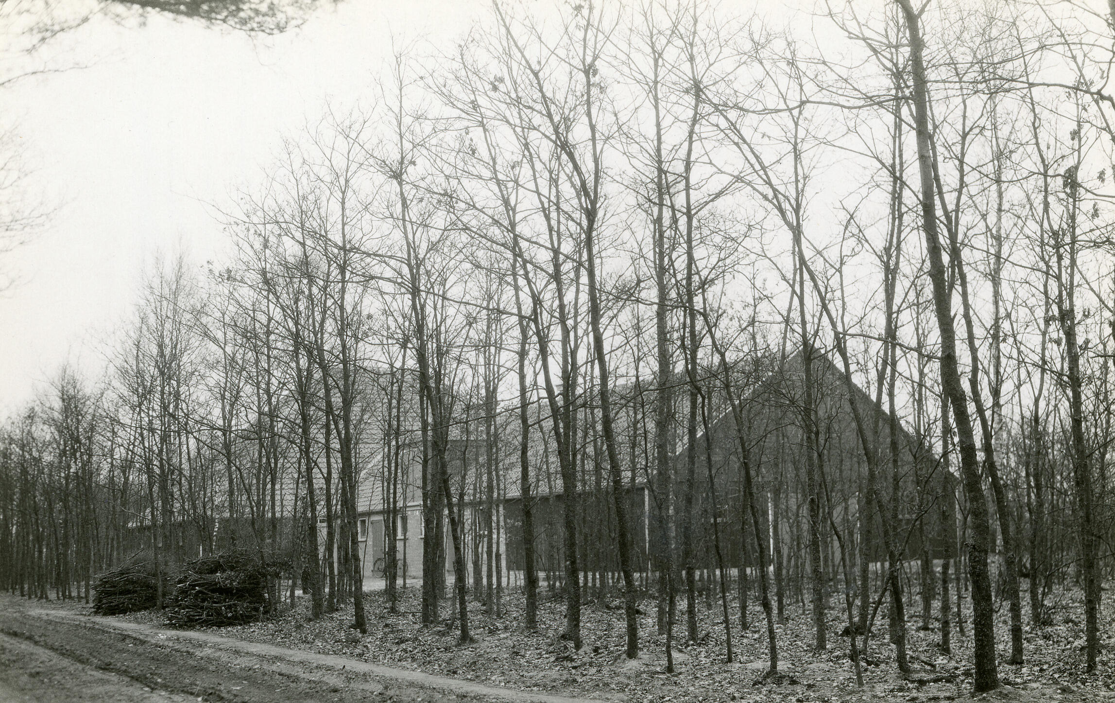 Stal met schuur, Deelen, 1930 (zwart-wit foto)