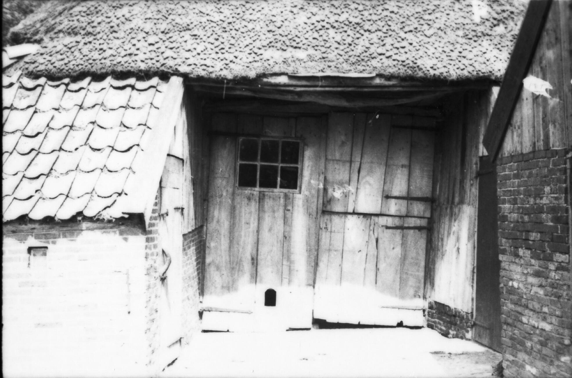Besneeuwde schuur, Borkel, 1937 (zwart-wit foto)