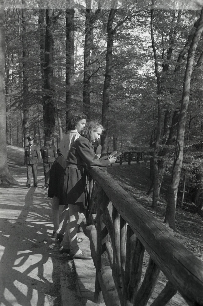 Een groep dames waaronder Luftwaffe Helferinnen voor...