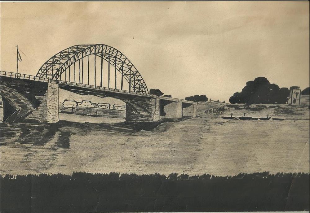 Pentekening, Waalbrug Nijmegen, gemaakt door een Eng...