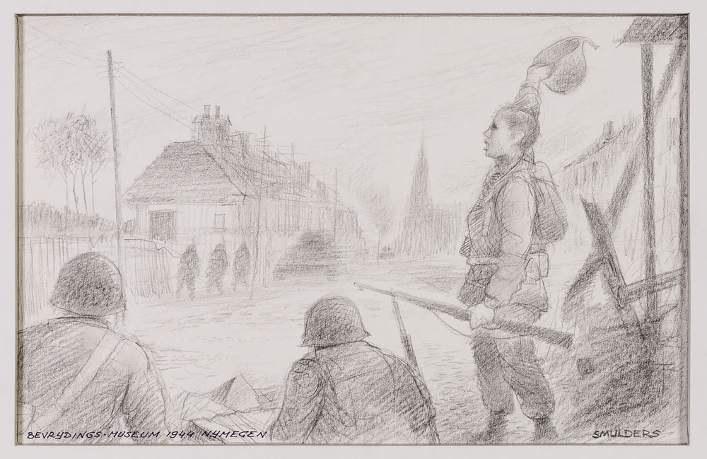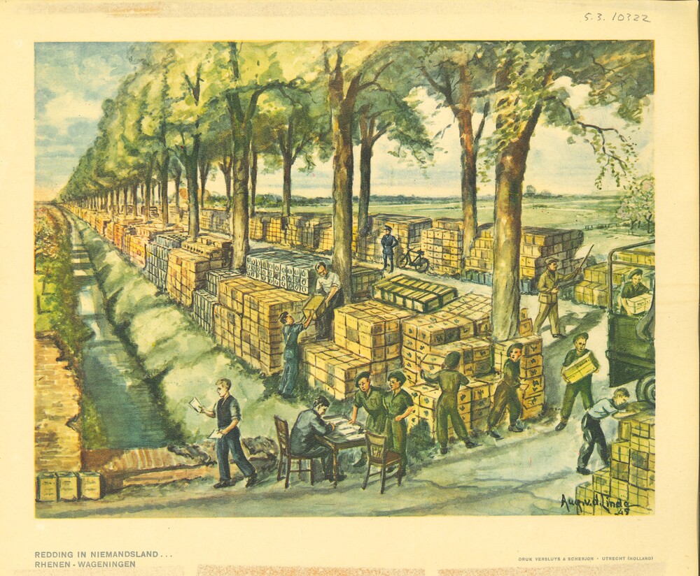 Vel: tekening "Redding in niemandsland... Rhenen-Wag...