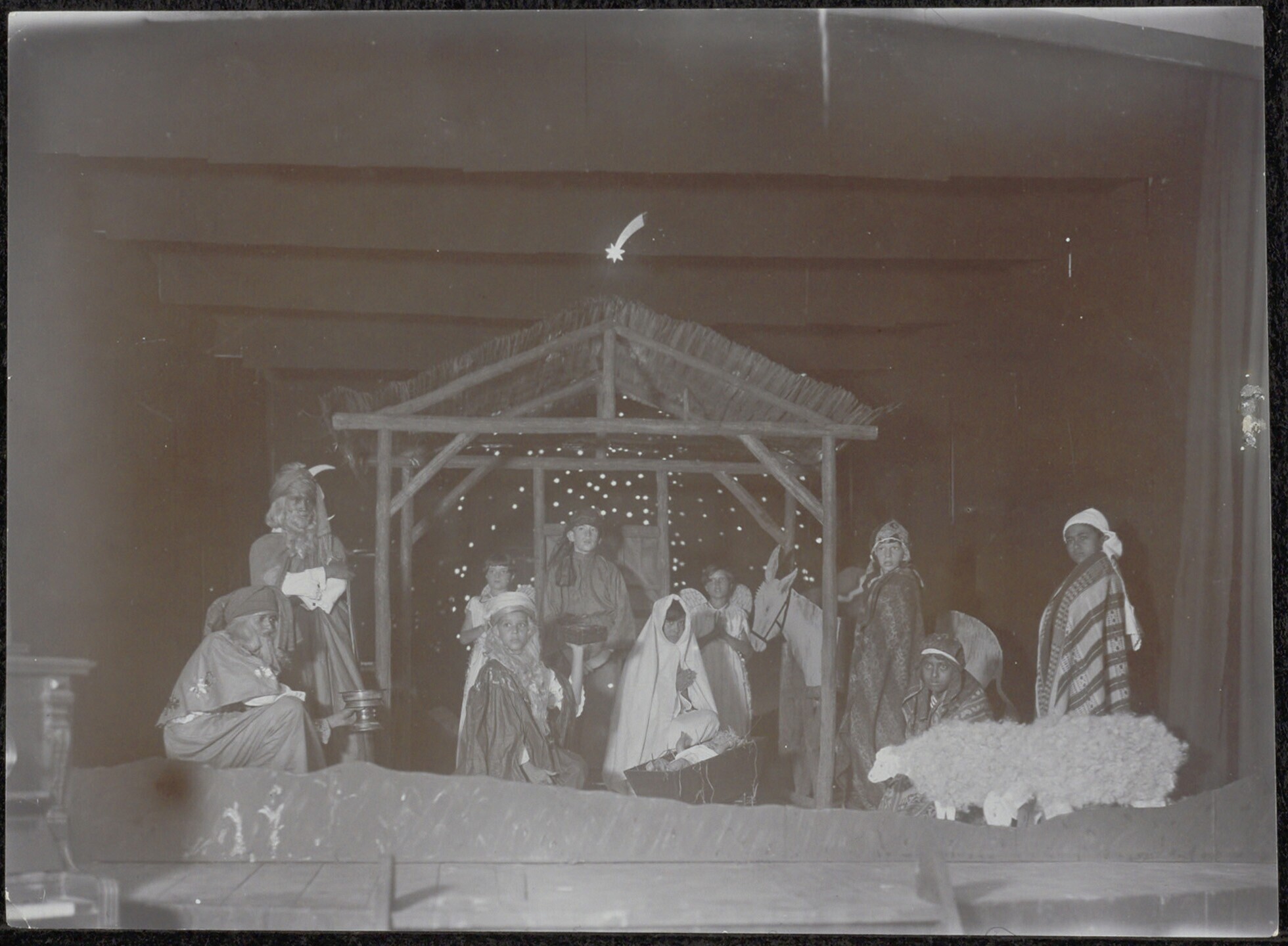 Kinderen voeren een toneelstuk op waarin zij het ker...