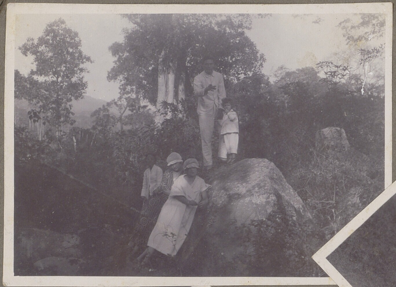 Gezelschap met Javaanse bij een rots op Java