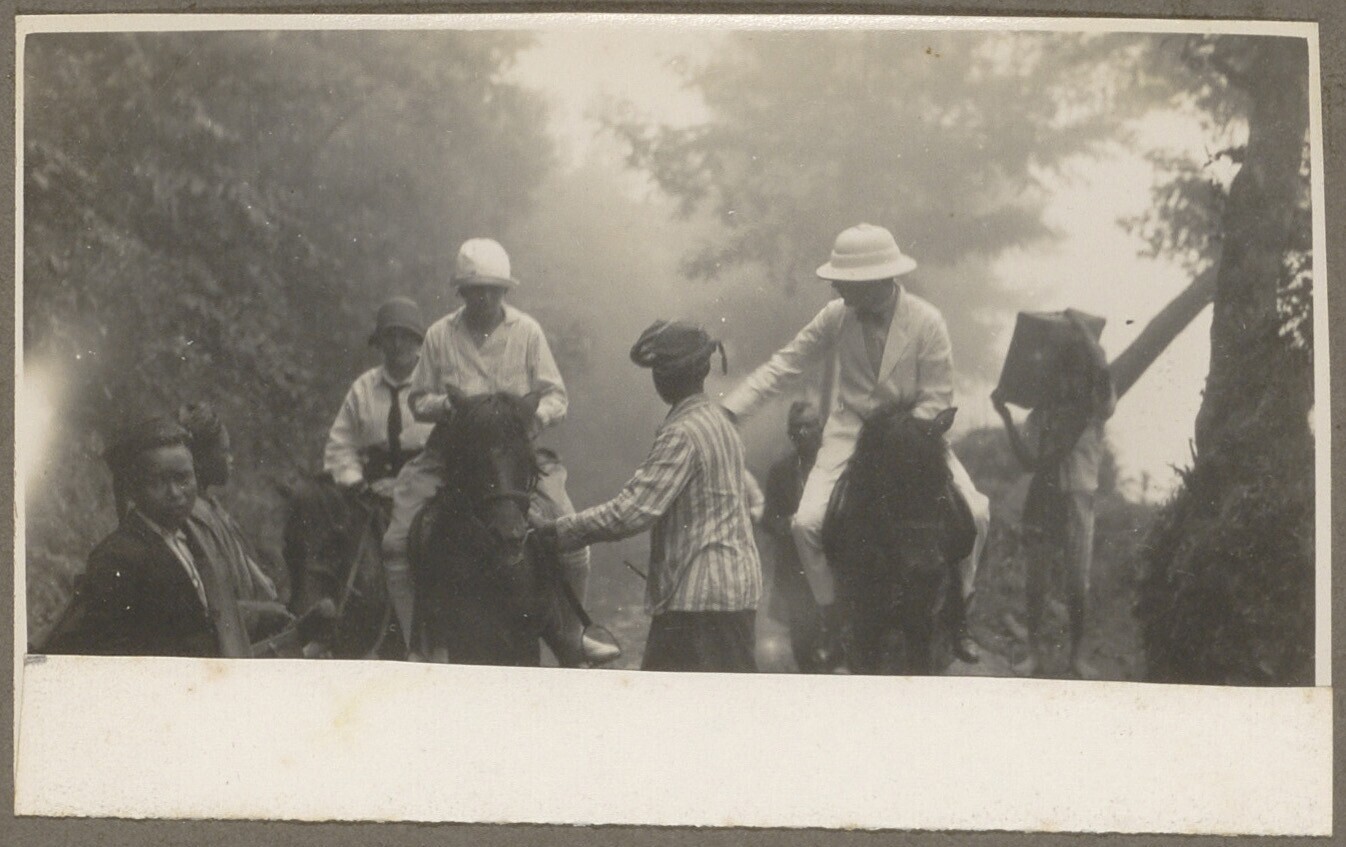 Europese kinderen te paard met Javaans huispersoneel...