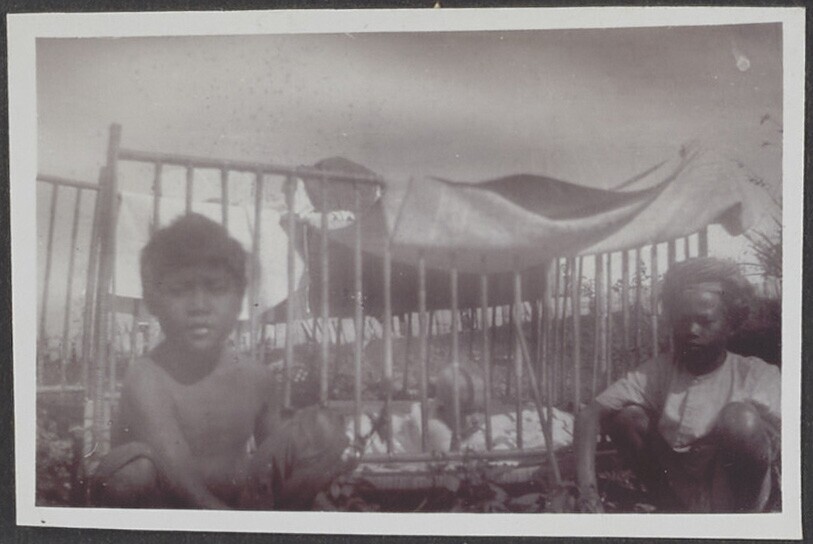 Javaanse kinderen bij een box met een Nederlandse baby