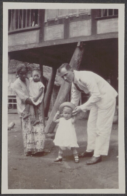 Europese man met kind en een Javaanse kinderverzorgs...