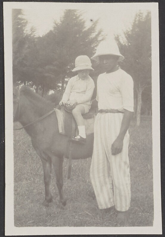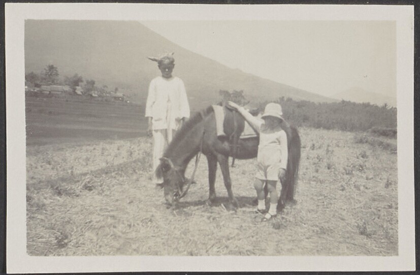 Europees kind met paard en Javaans personeelslid in ...