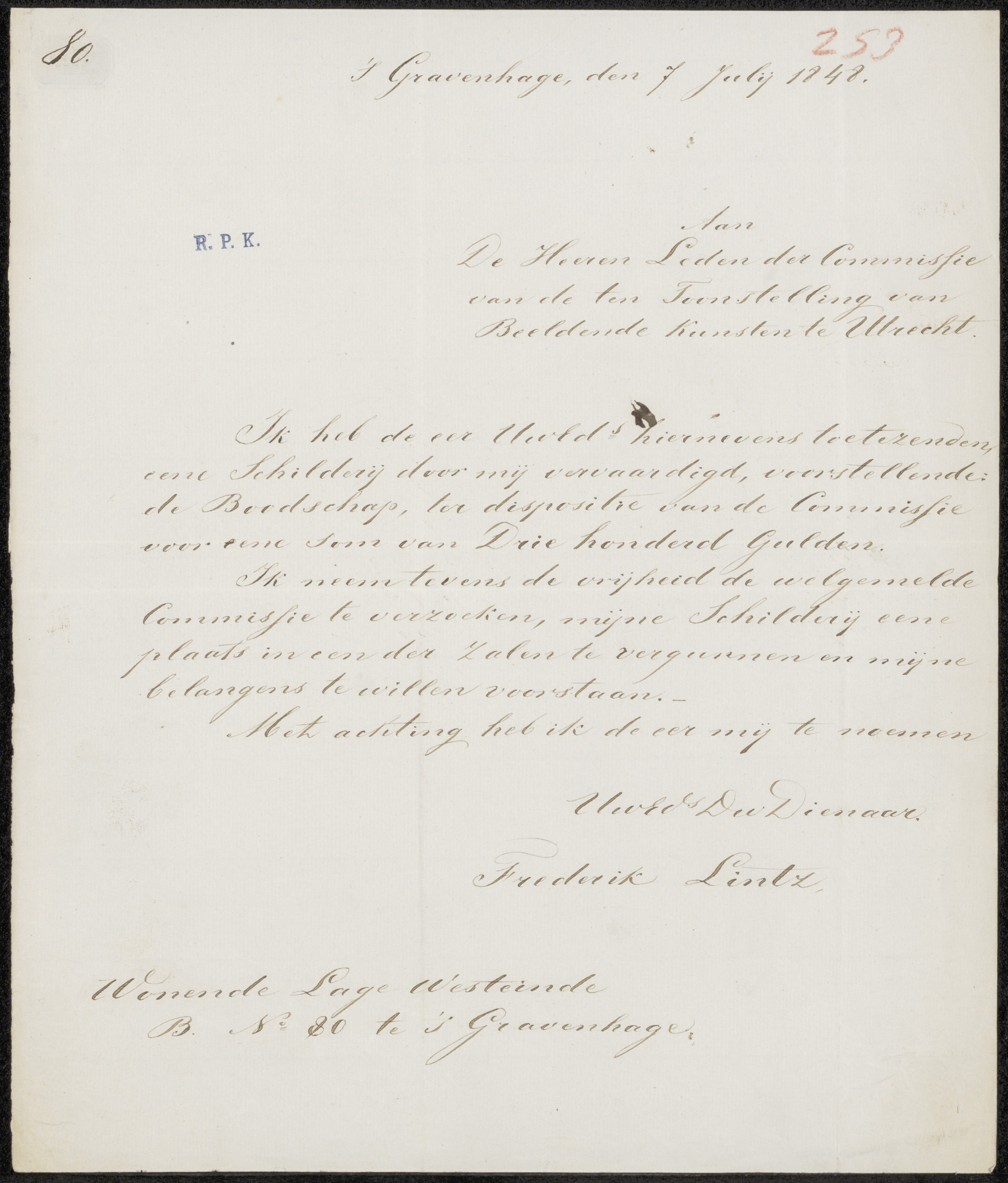 Brief aan de Commissie van de Tentoonstelling van Le...