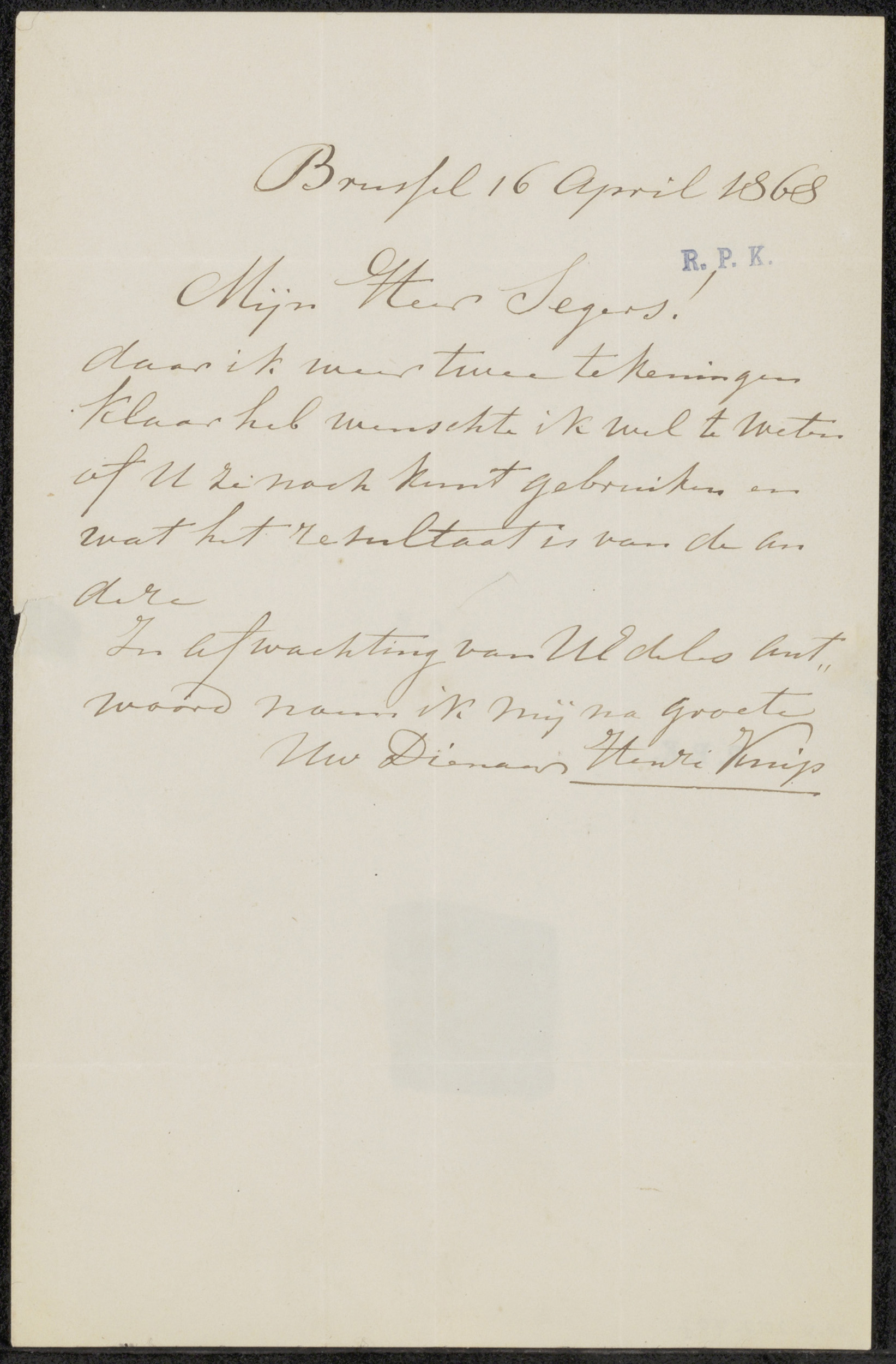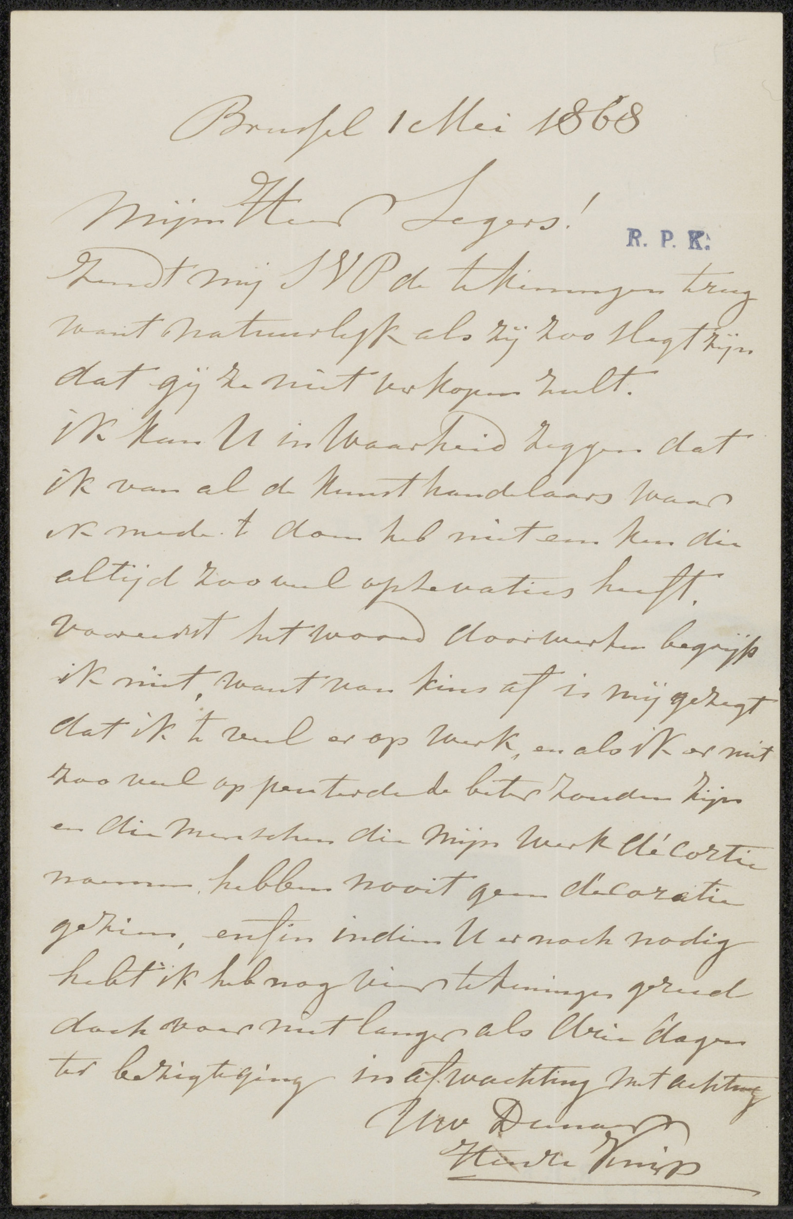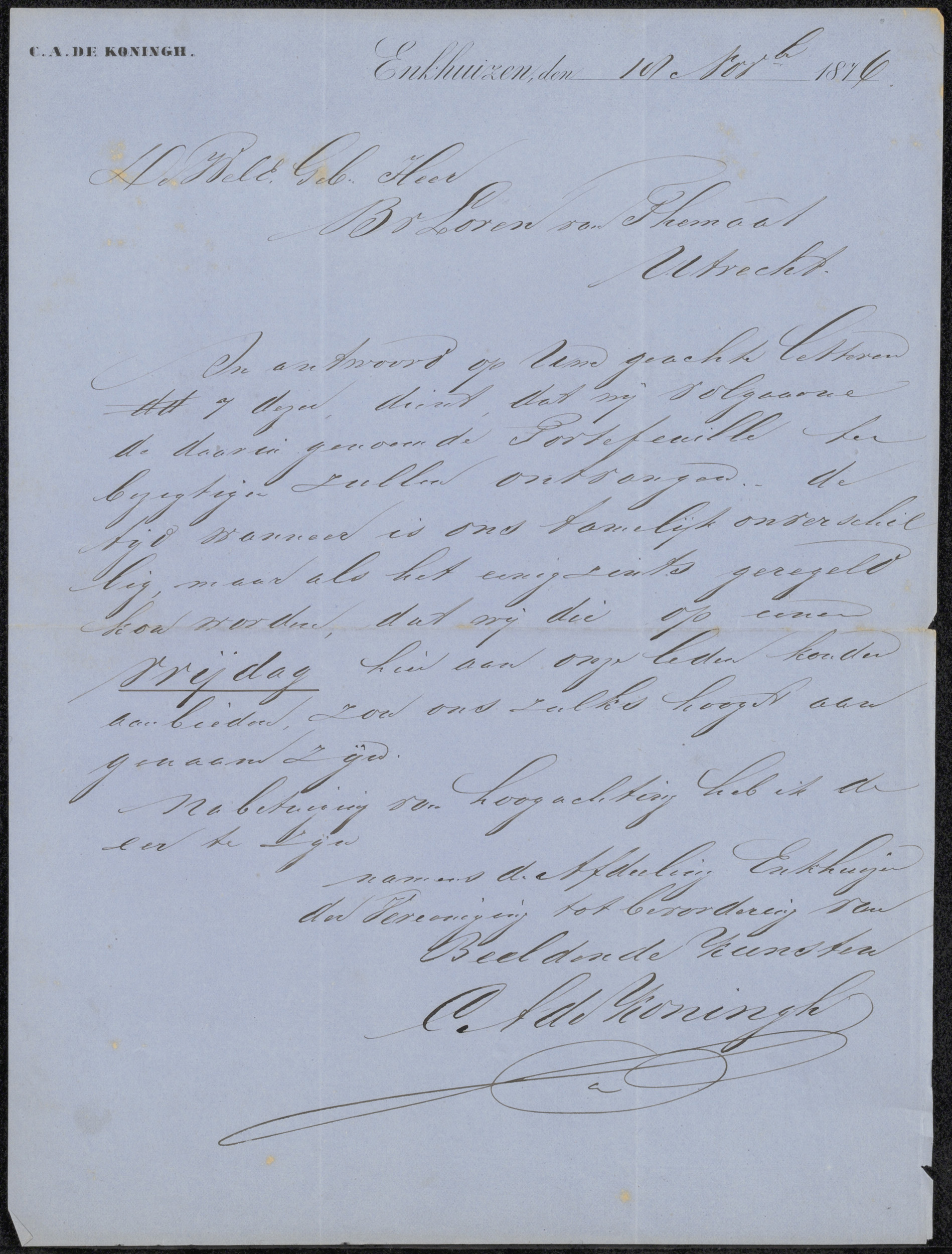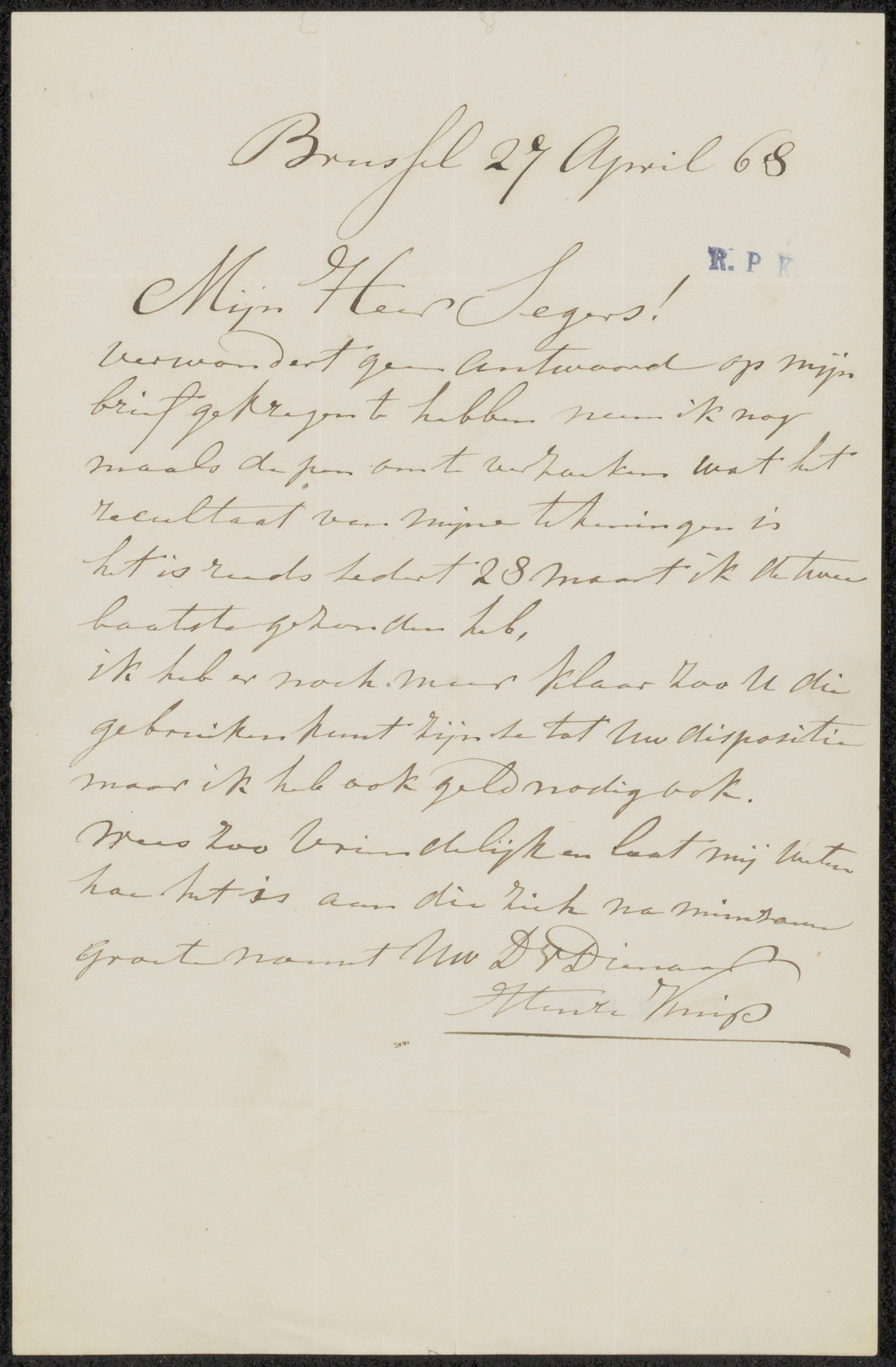 Brief aan Pieter Verloren van Themaat, secretaris va...