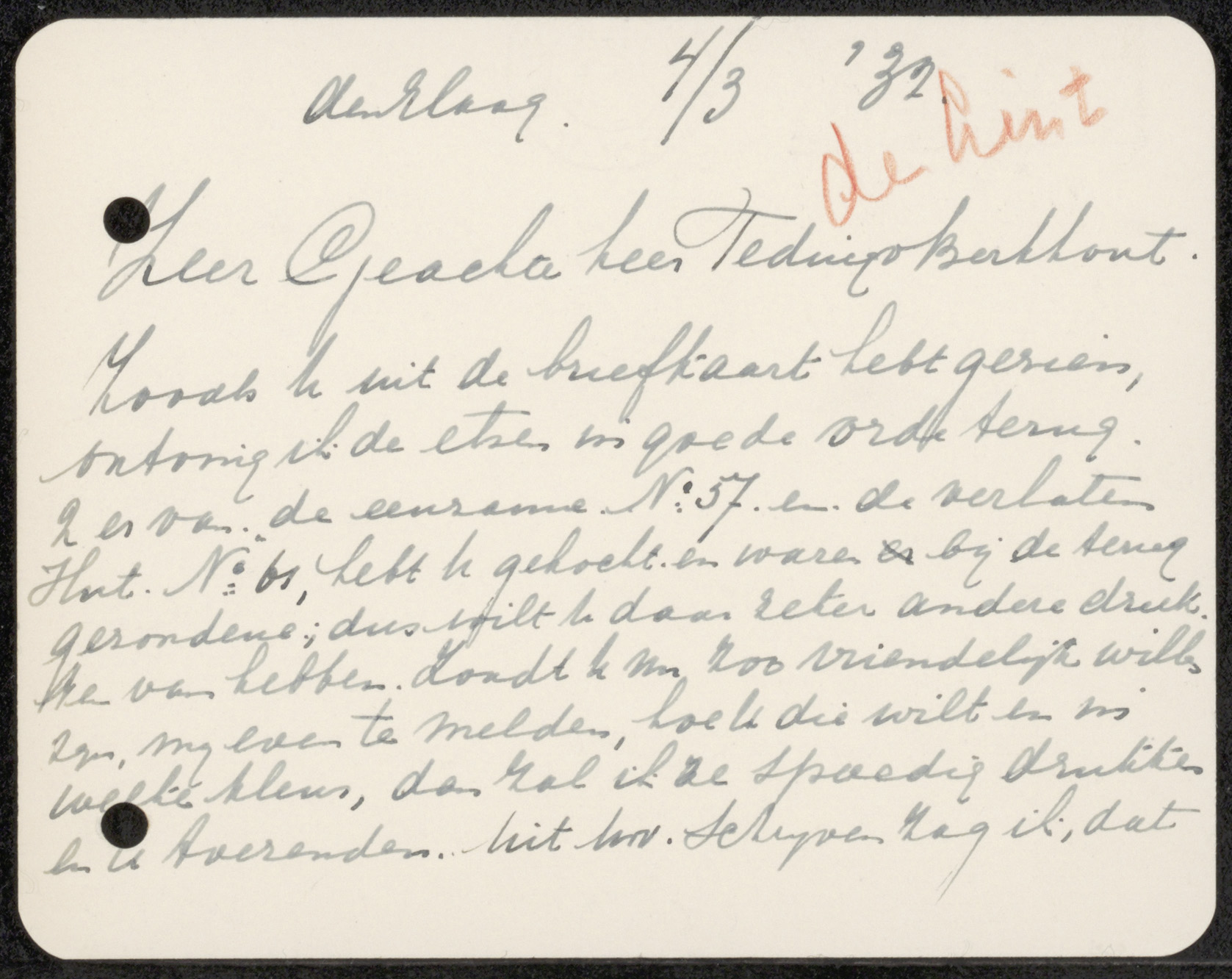 Brief aan jonkheer Hendrik Teding van Berkhout (1879...