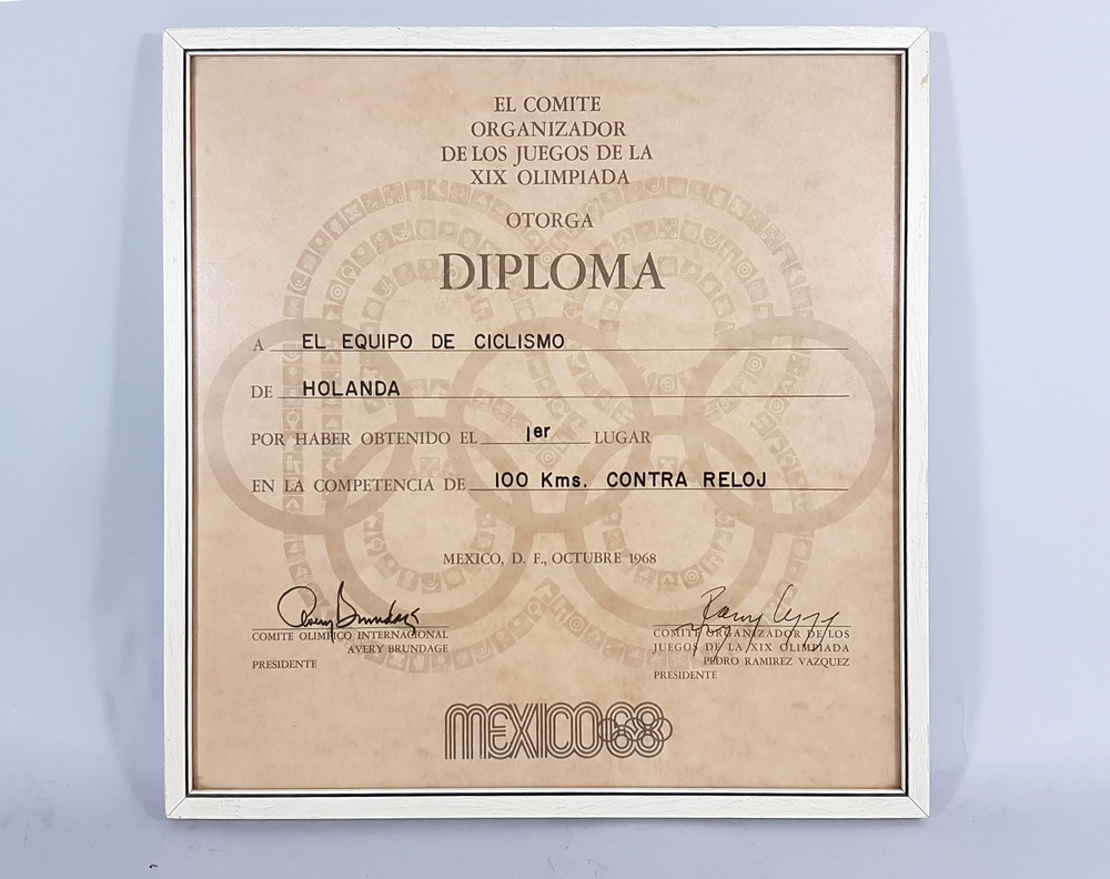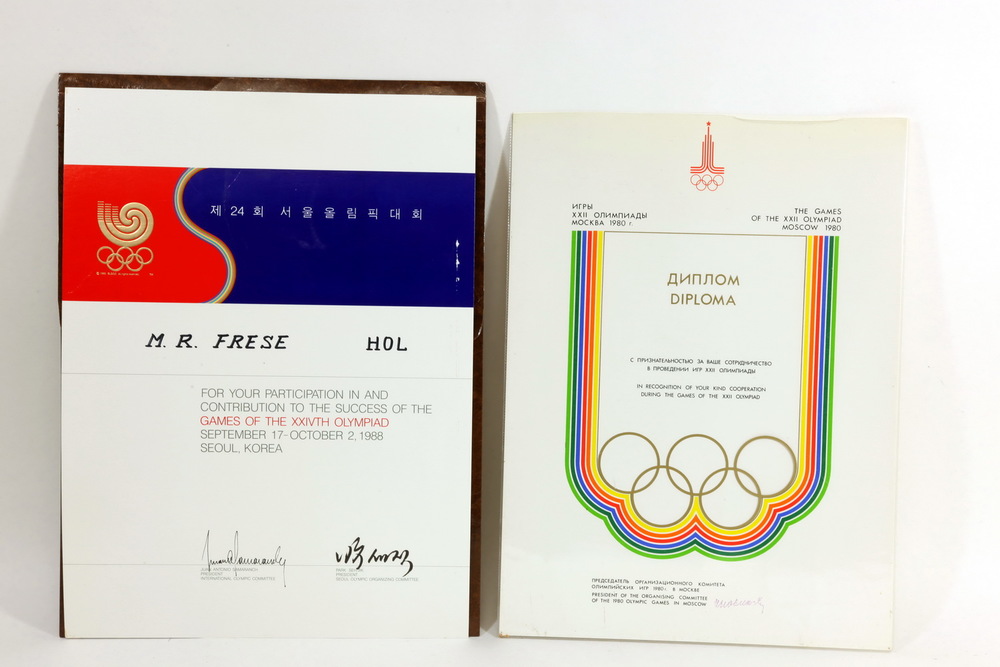 Olympisch deelnamediploma Hans Schnitger chef d'équi...
