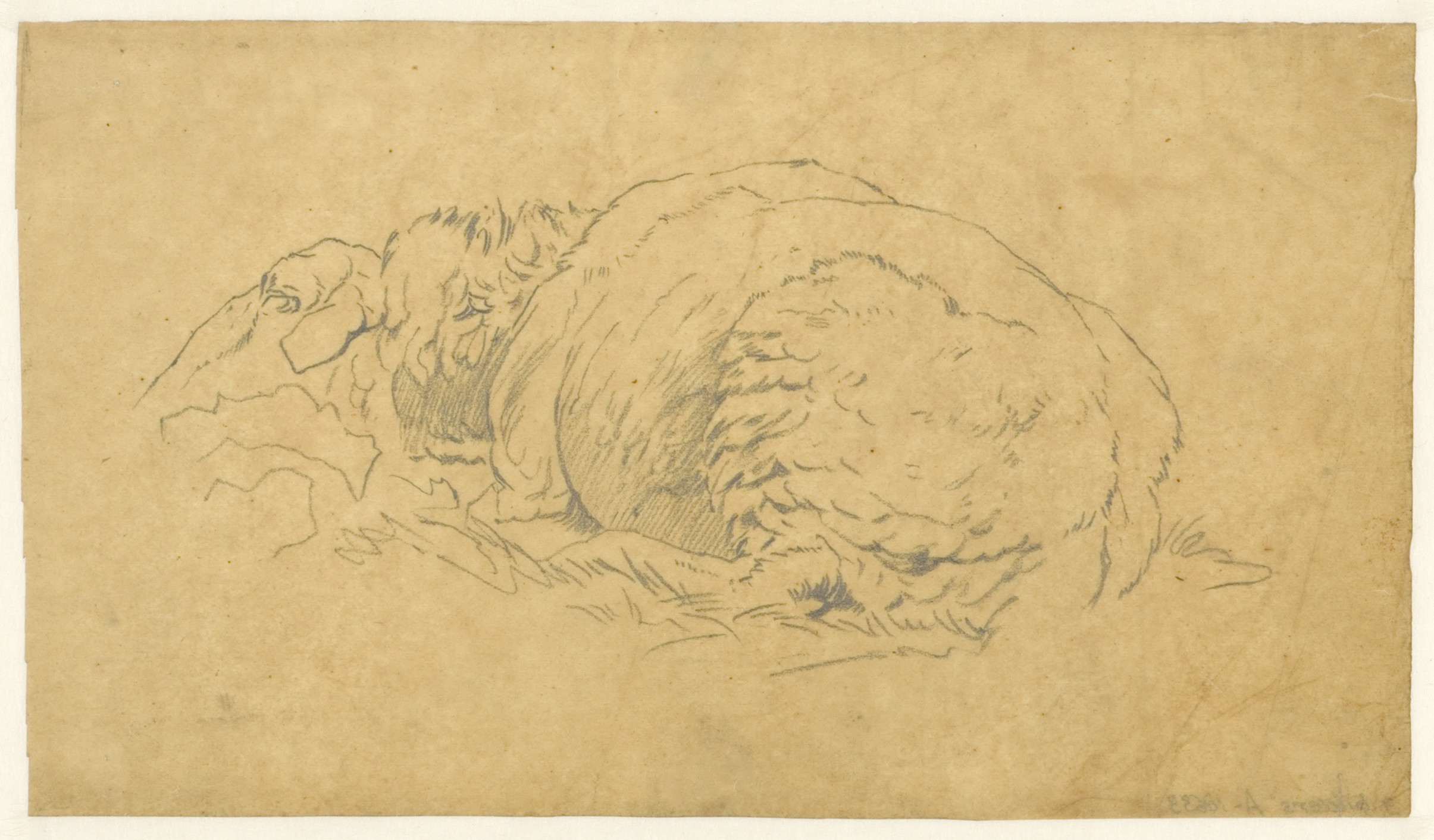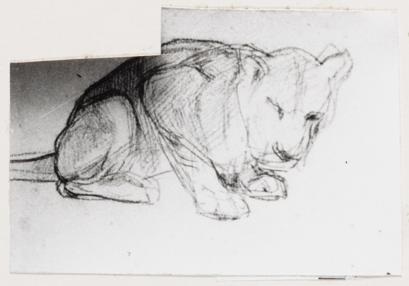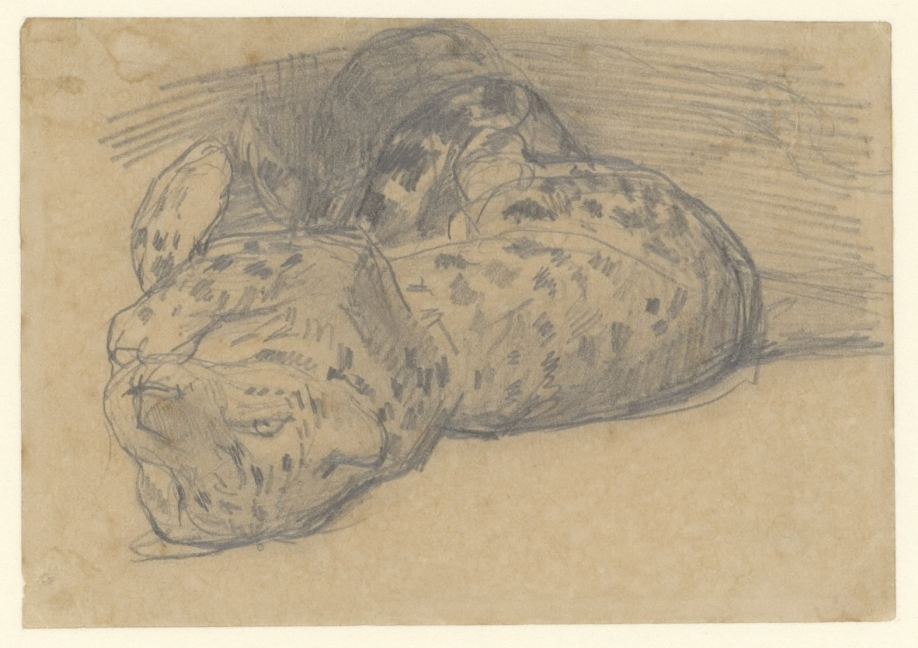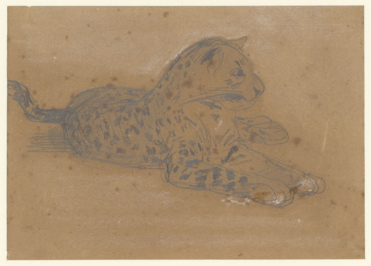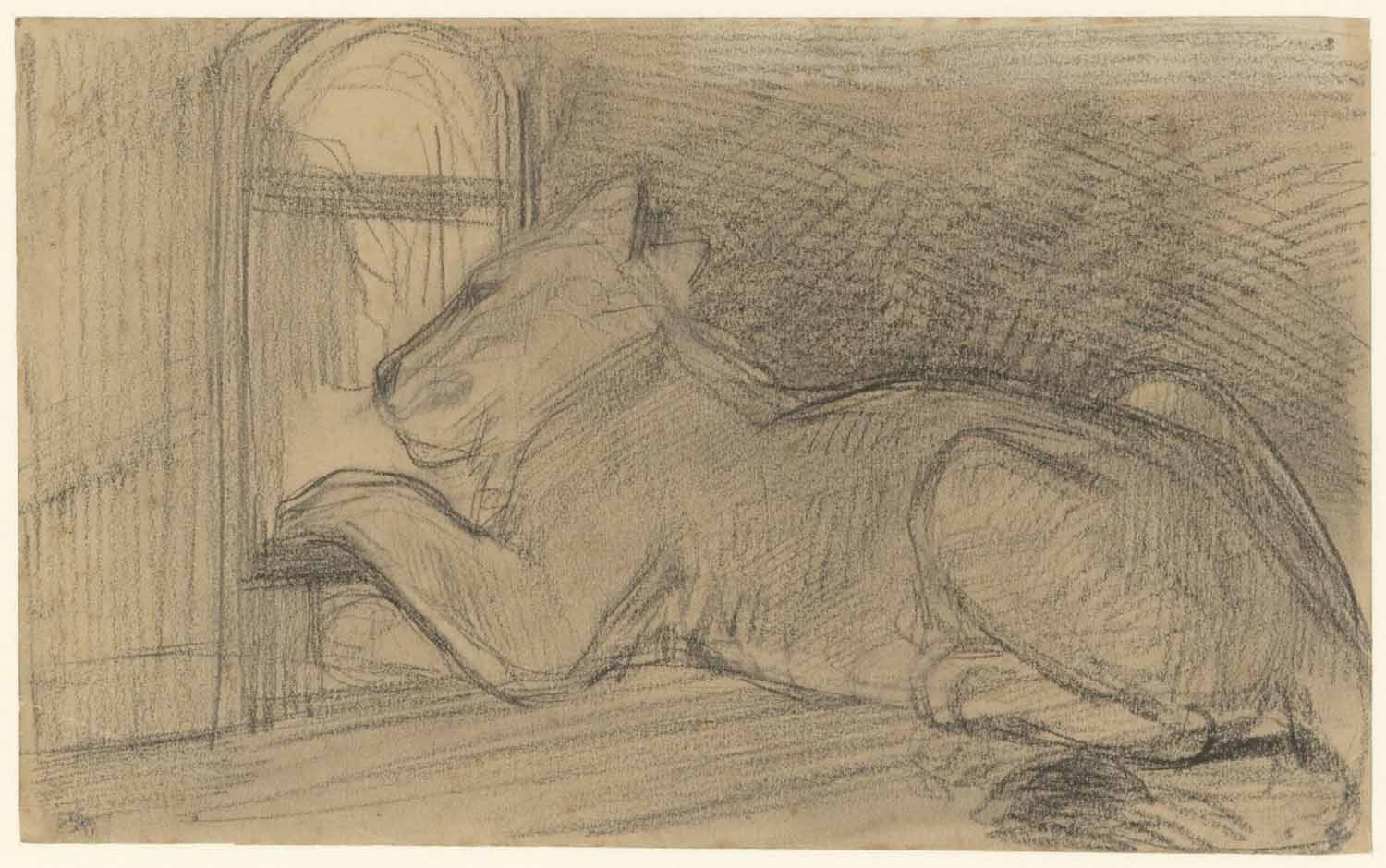 Liggende leeuw (recto) : dierstudie (kat?) (verso) (...