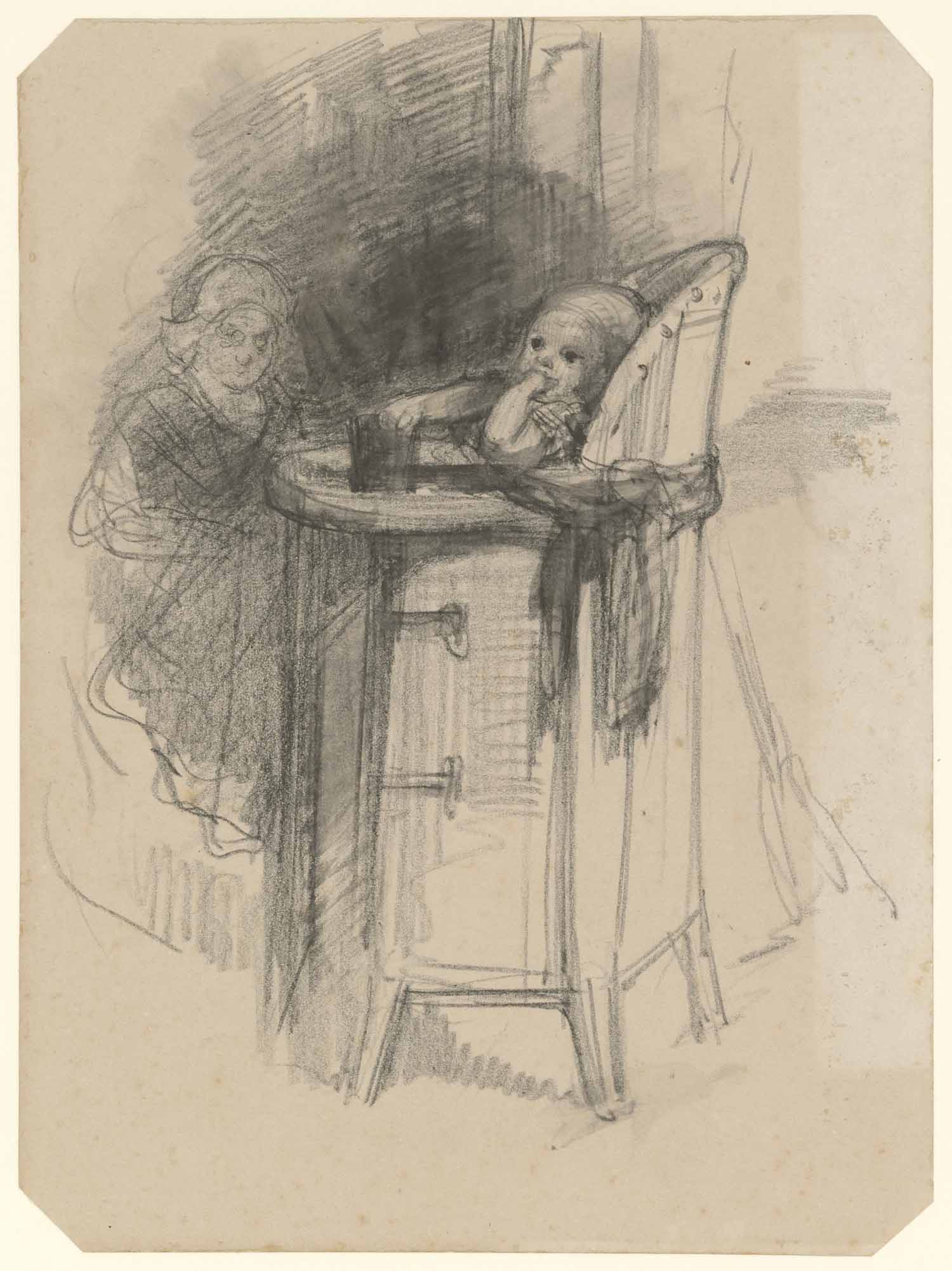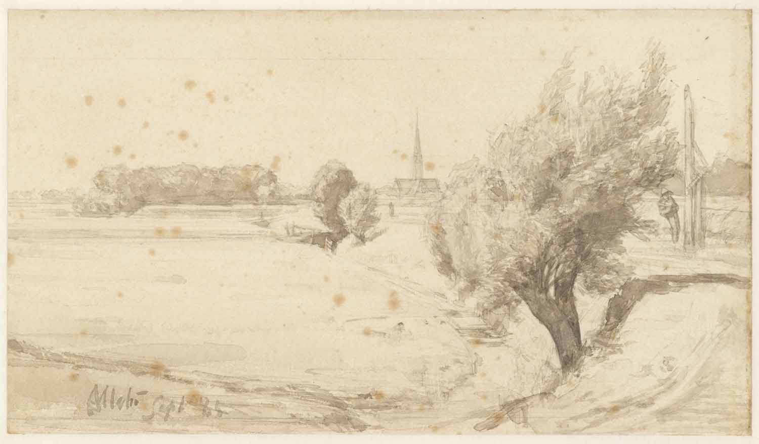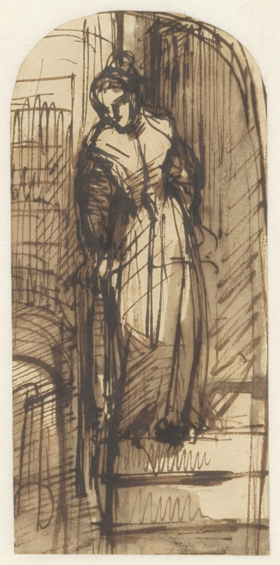 Hamlet en Horatio op het kerkhof (verso: staande vrouw)
