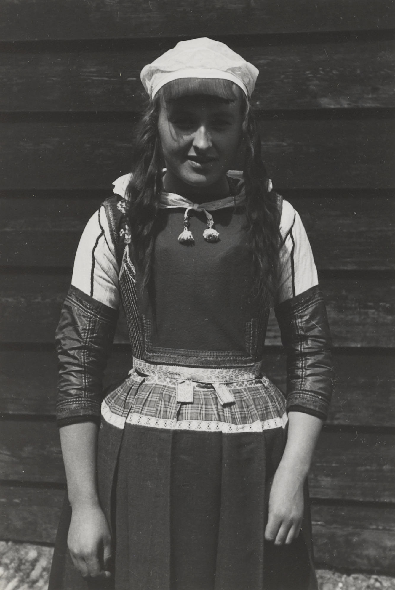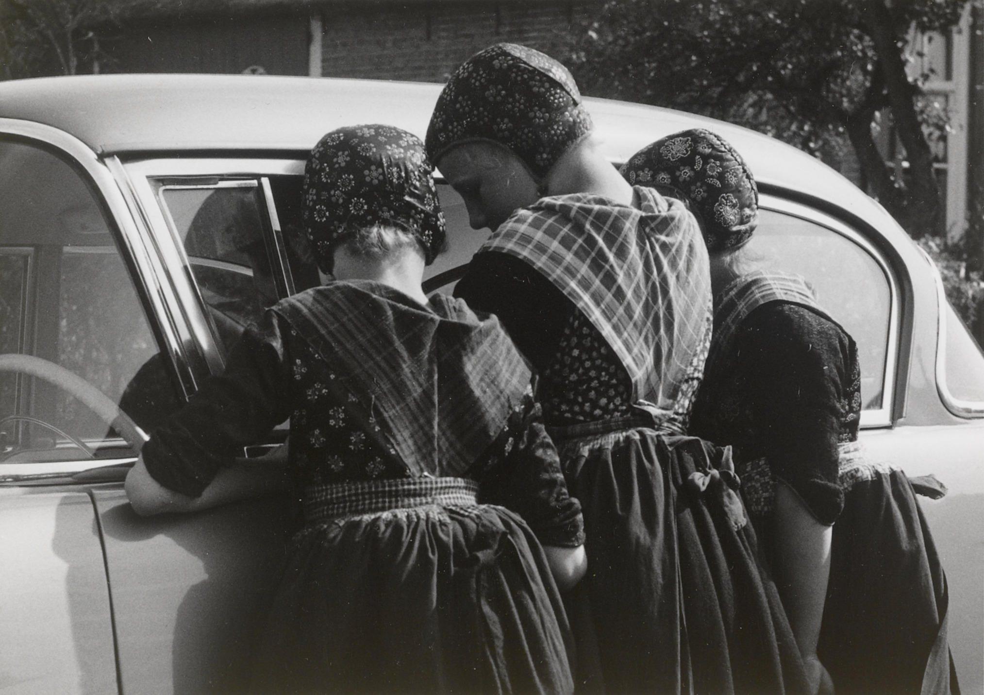 Meisjes in Staphorster dracht, 1960 (zwart-wit foto)