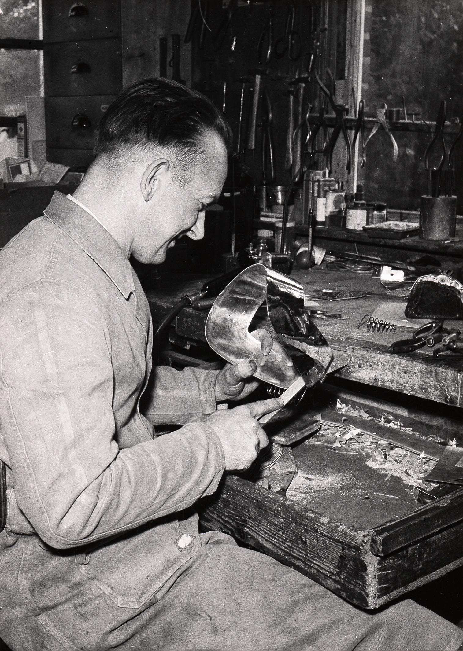 Zilversmid Freddy Drost uit Staphorst, 1960 (zwart-w...